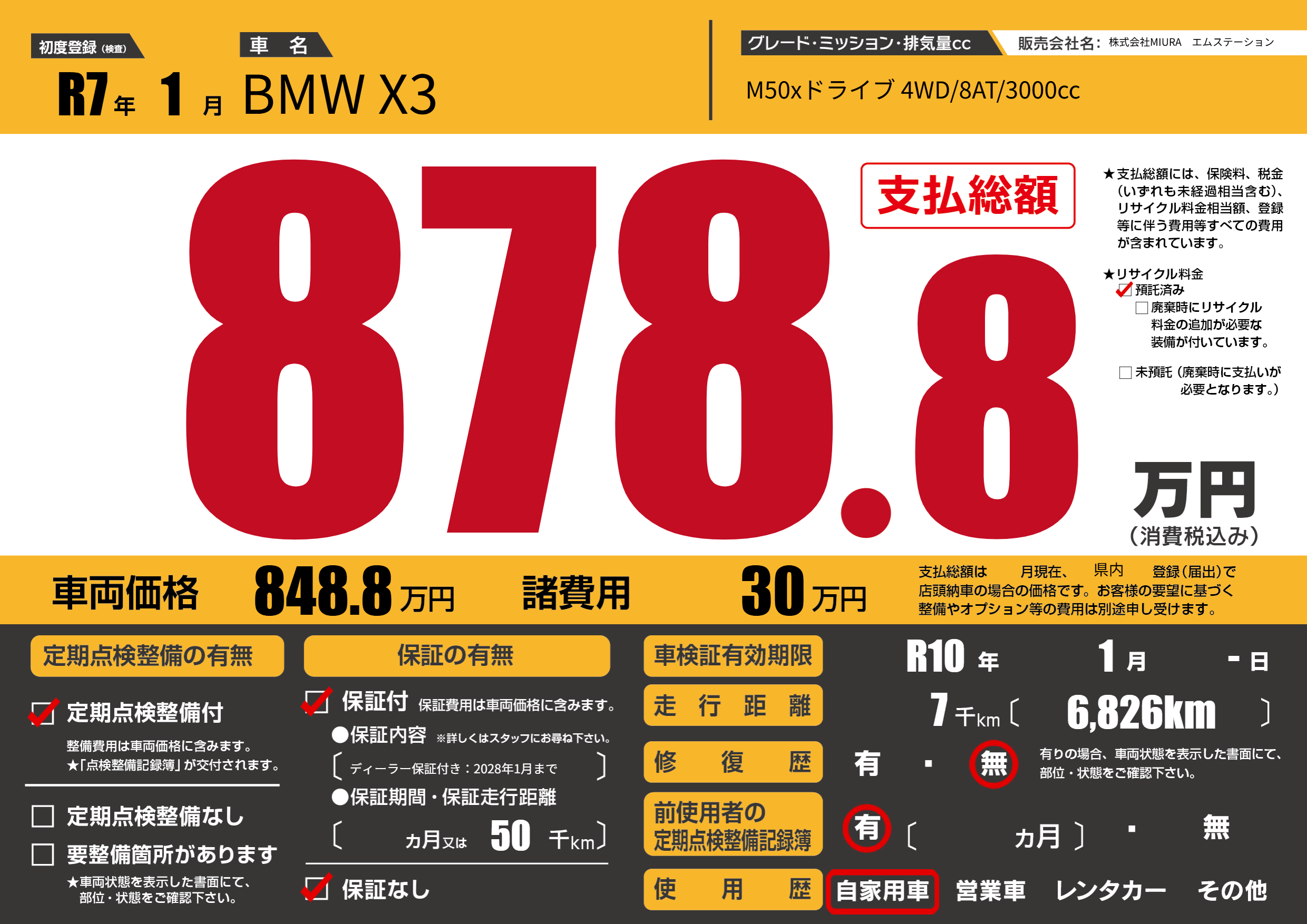 | 車名 | BMW X3 | グレード ミッション 排気量 |