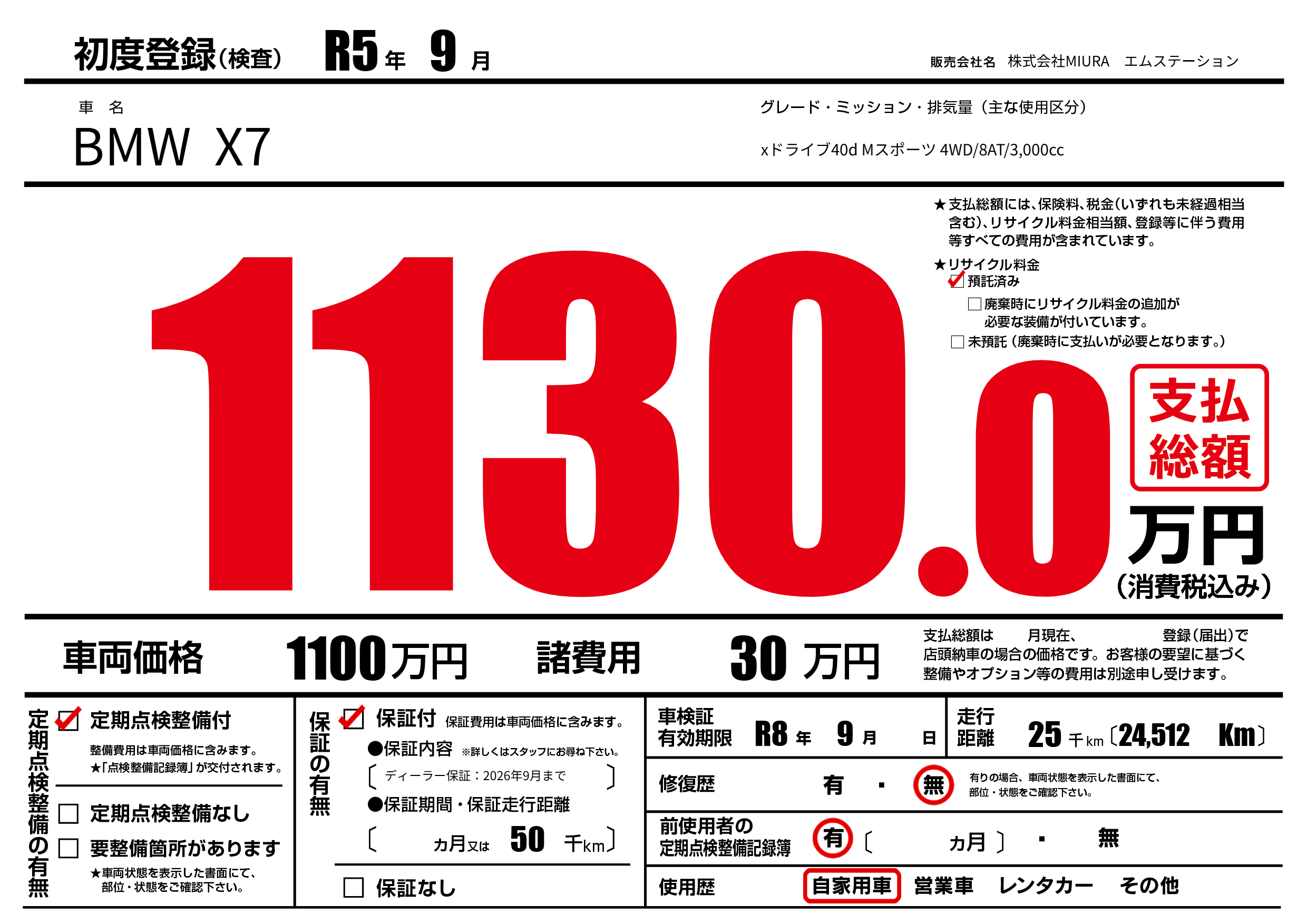 なし | 車検制限 | R8年9月---月 |