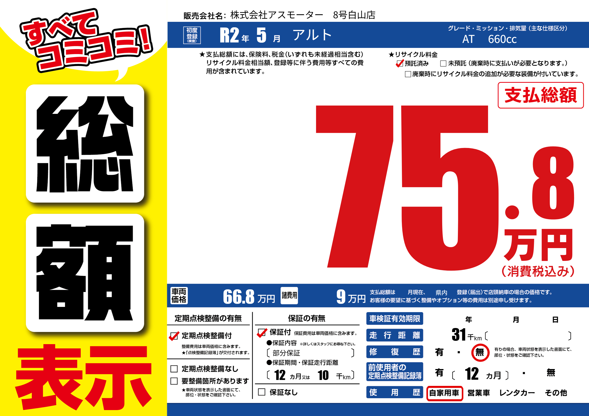 保証付き 保証内容(部分保証) 12ヶ月または(10)千kmまで |