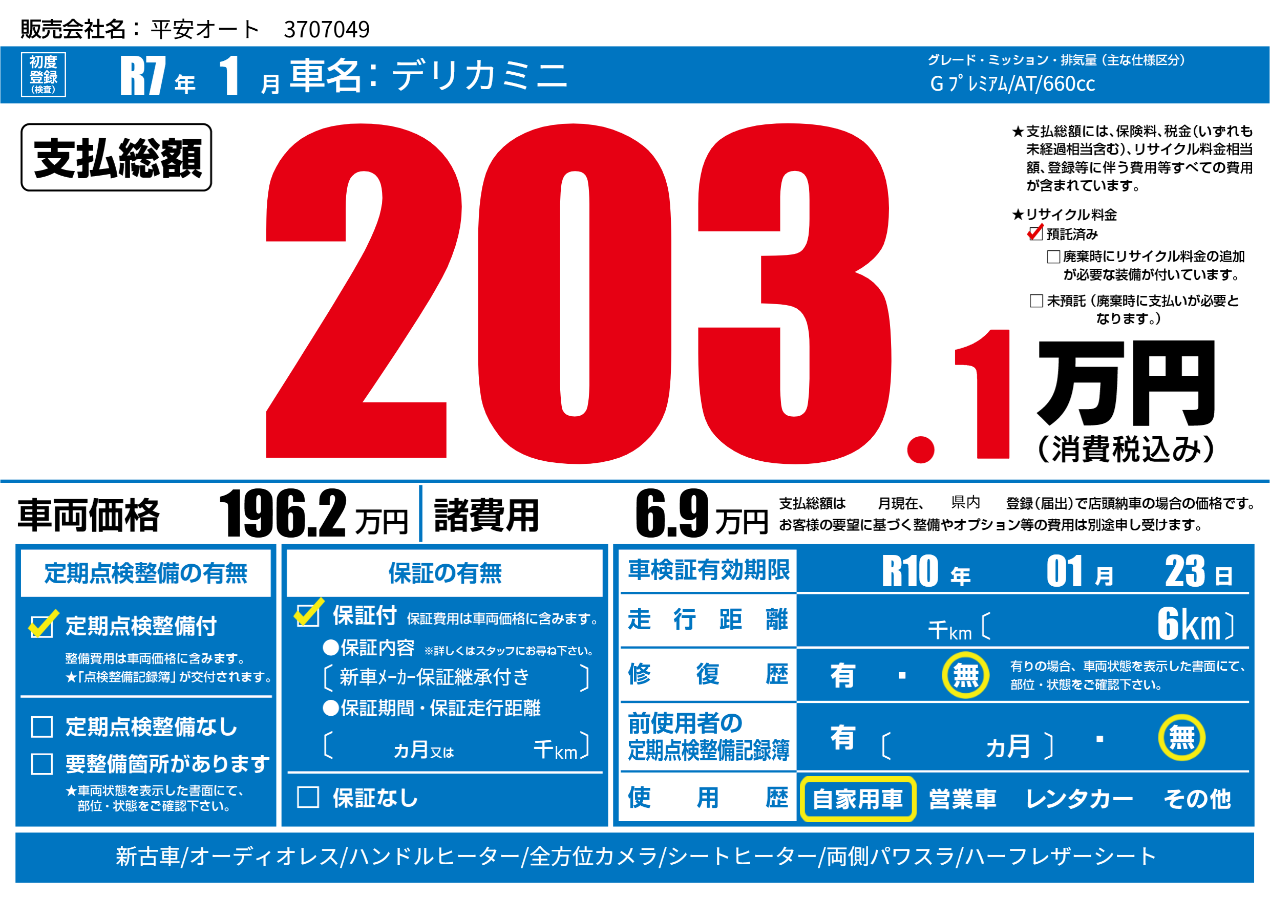 | 走行キロ | - | 初年度登録 | R7年1月 |