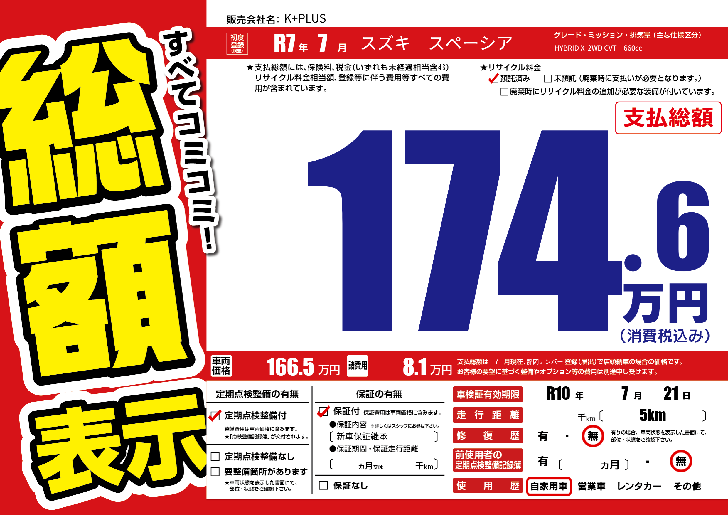 | 走行キロ | - | 初年度登録 | R7年7月 |