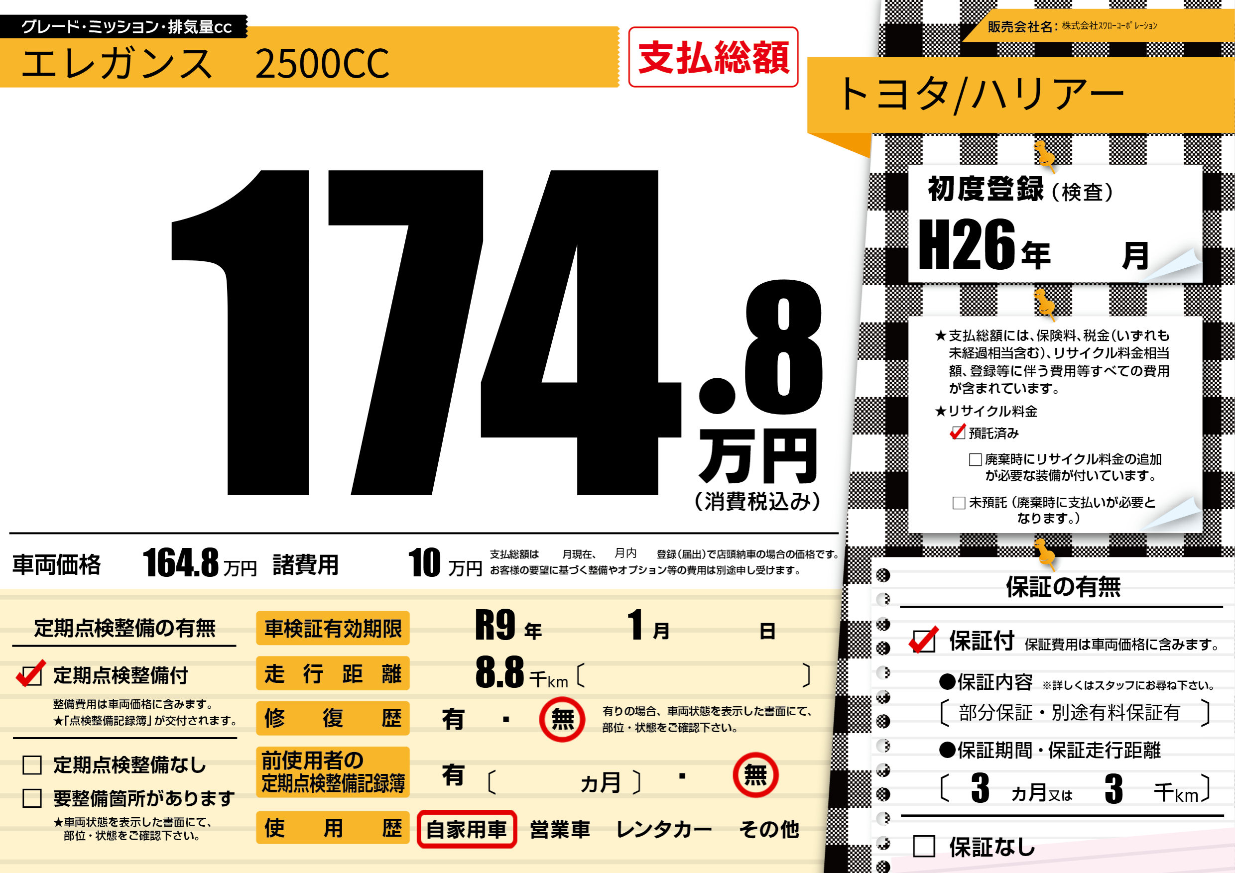 保証付き 保証内容(部分保証・別途有料保証有) 3ヶ月または(3)千kmまで |