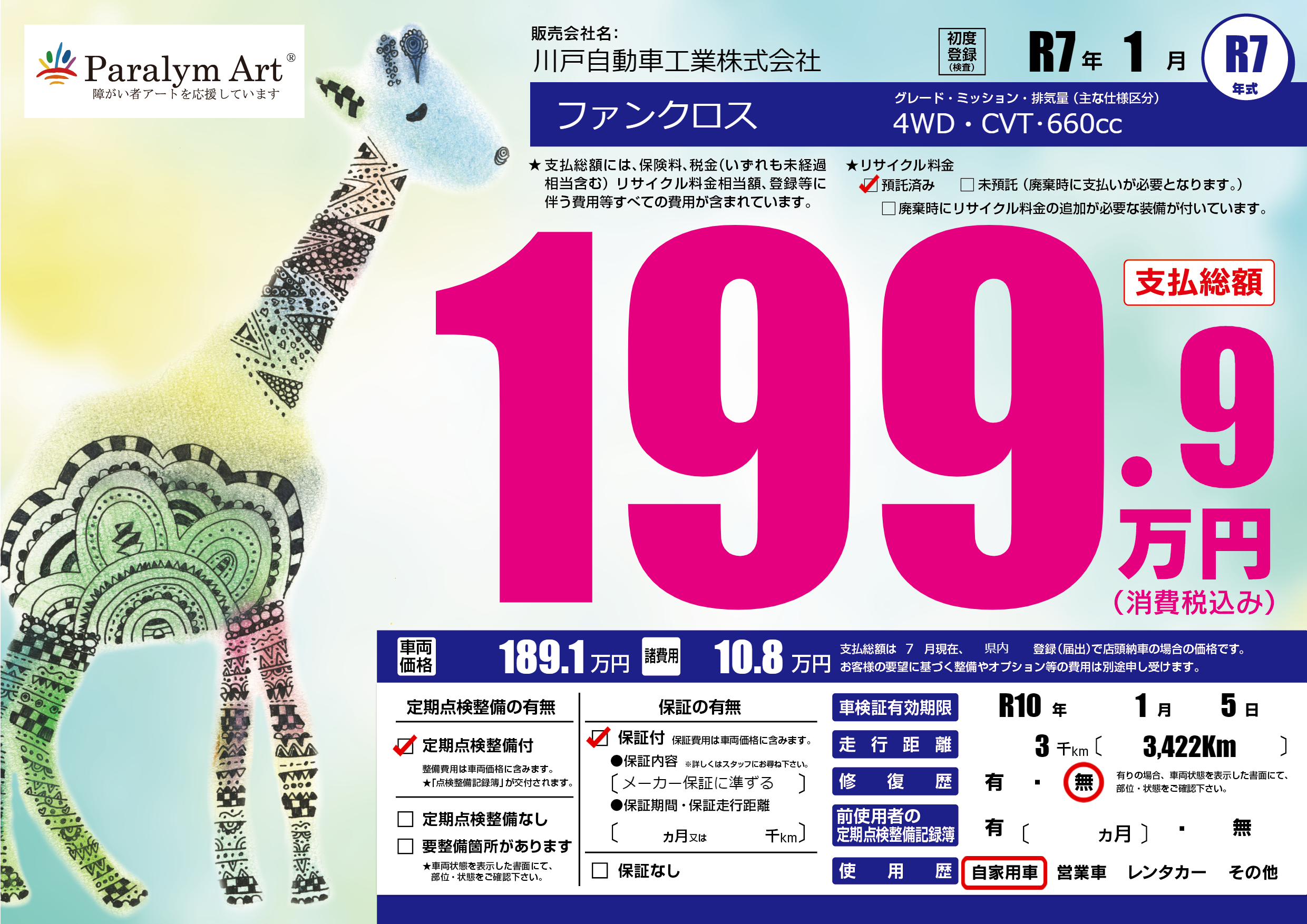 | 車名 | ファンクロス | グレード ミッション 排気量 |