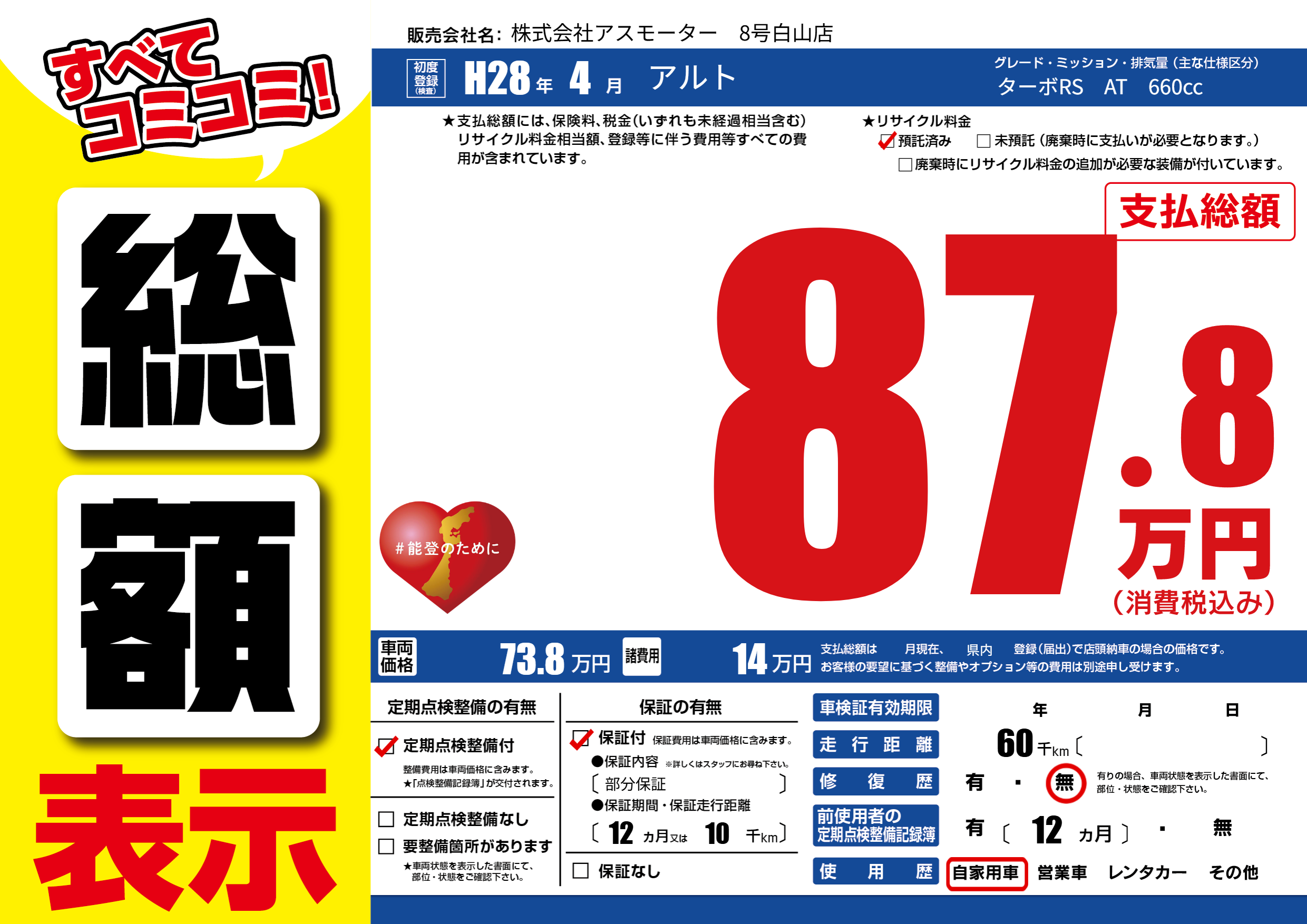 保証付き 保証内容(部分保証) 12ヶ月または(10)千kmまで |