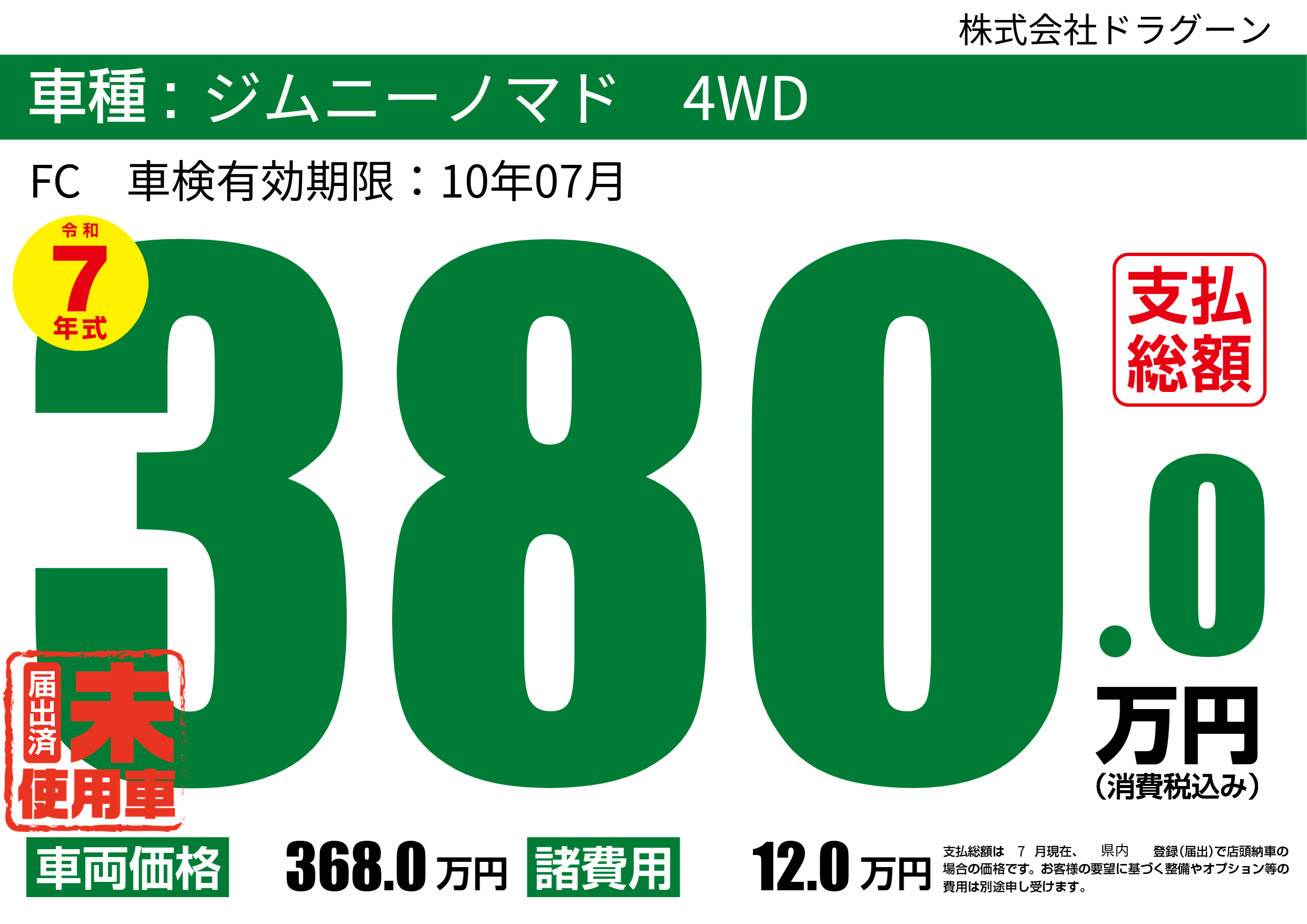 | 車名 | ジムニーノマド 4WD | グレード ミッション 排気量 |