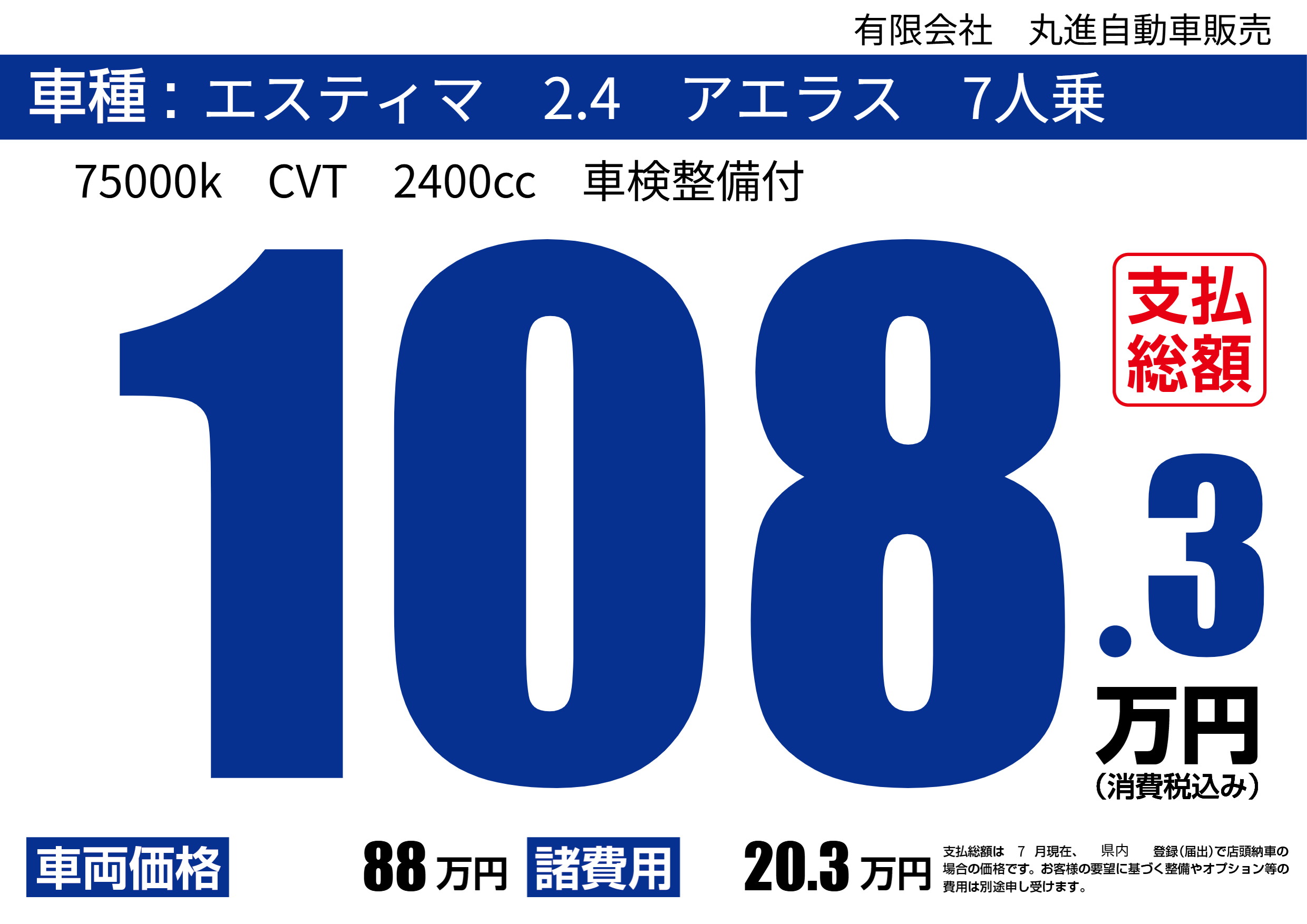 | 車名 | エスティマ 2.4 アエラス 7人乗 | グレード ミッション 排気量 |