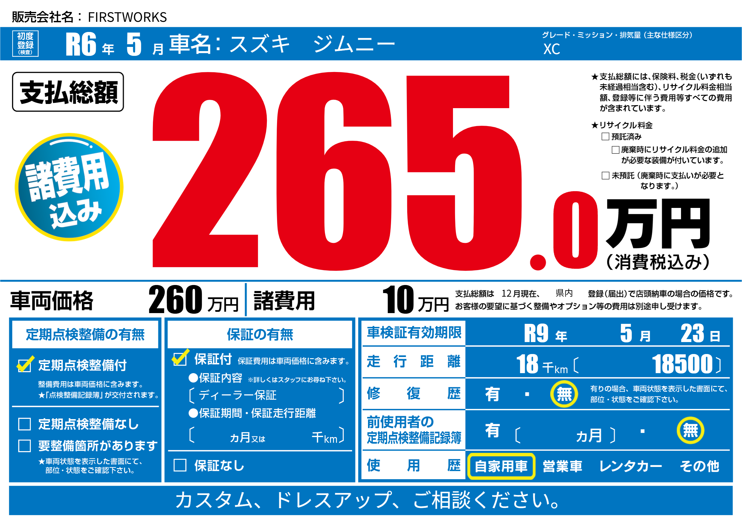 なし | 車検制限 | R9年5月23月 |