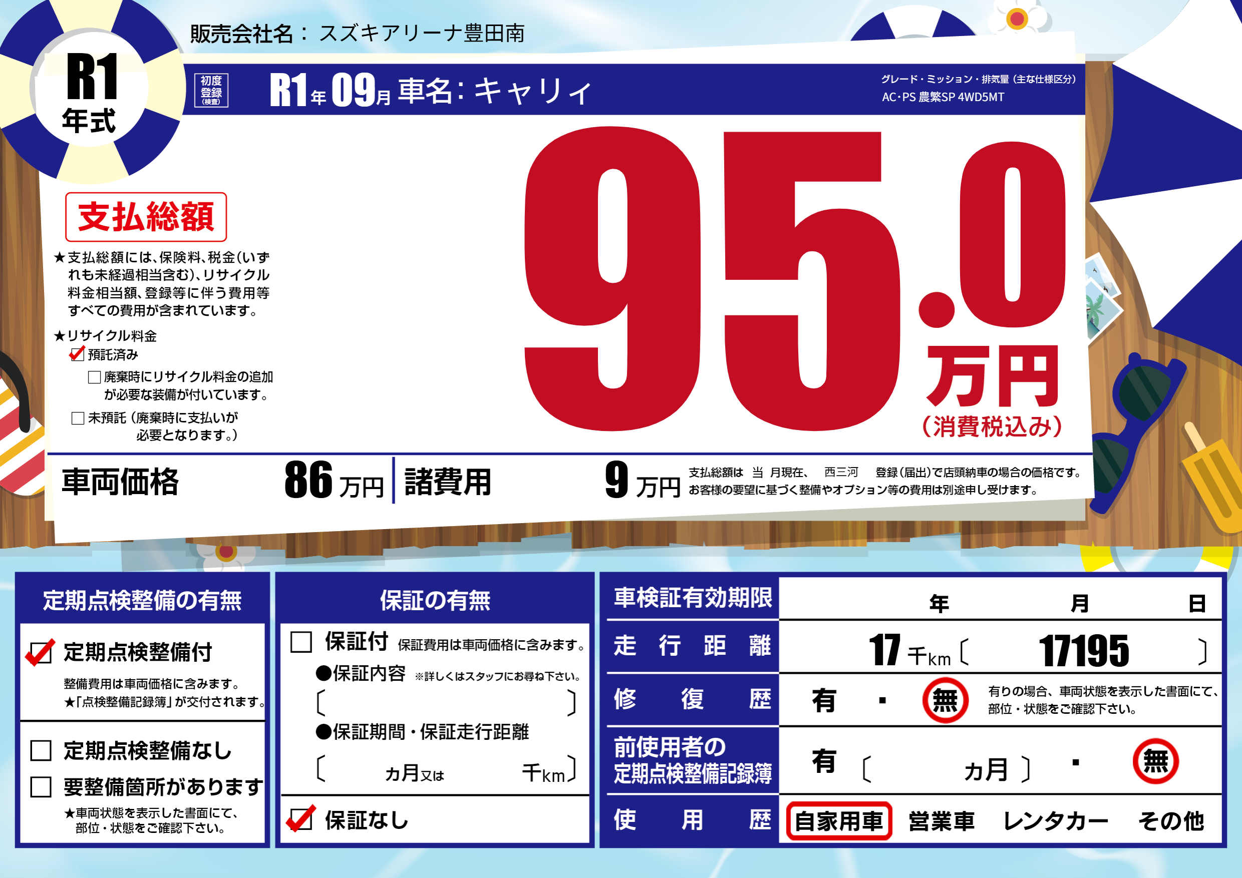 | 車名 | キャリィ | グレード ミッション 排気量 |