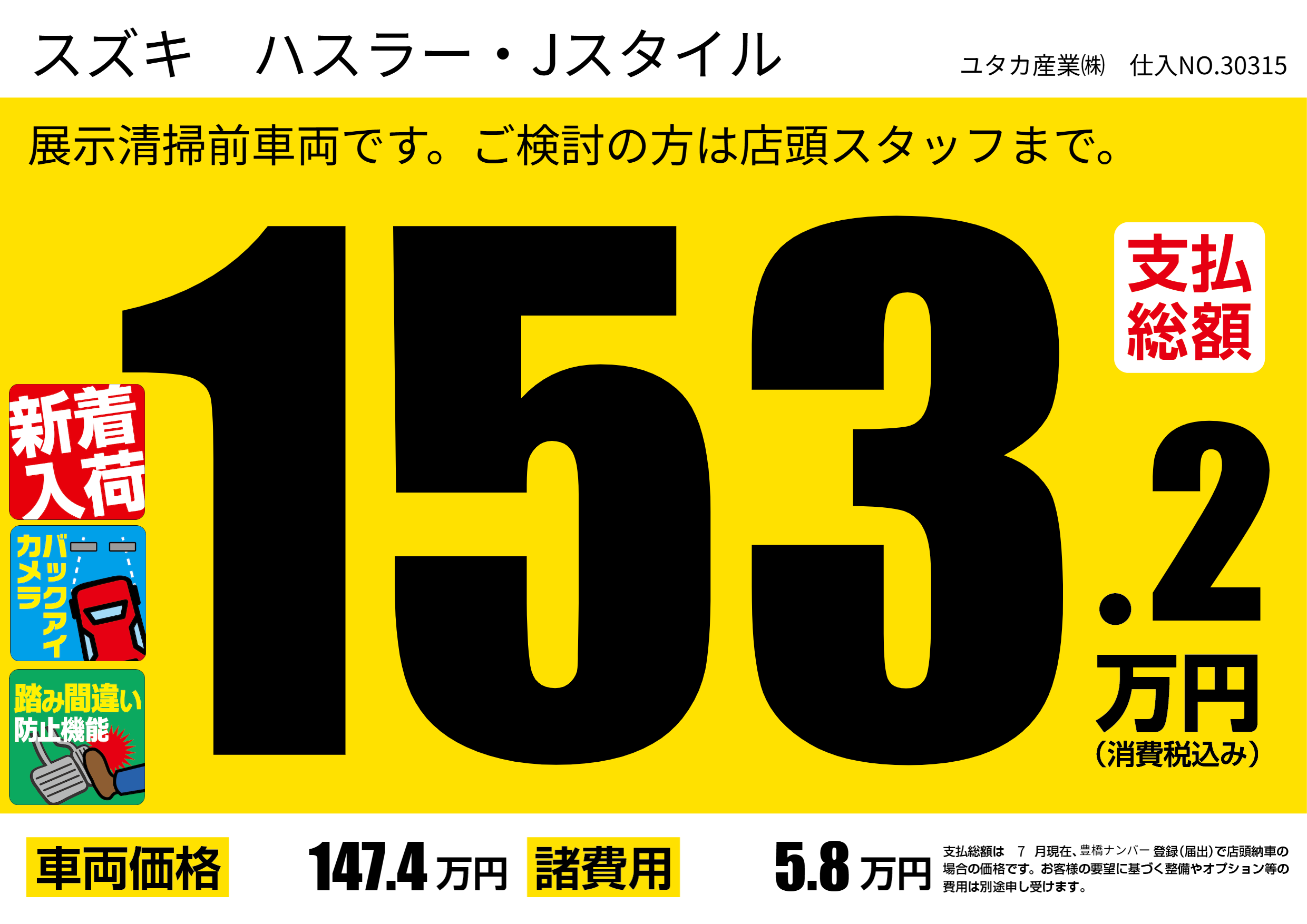 | 車名 | スズキ ハスラー・Jスタイル | グレード ミッション 排気量 |