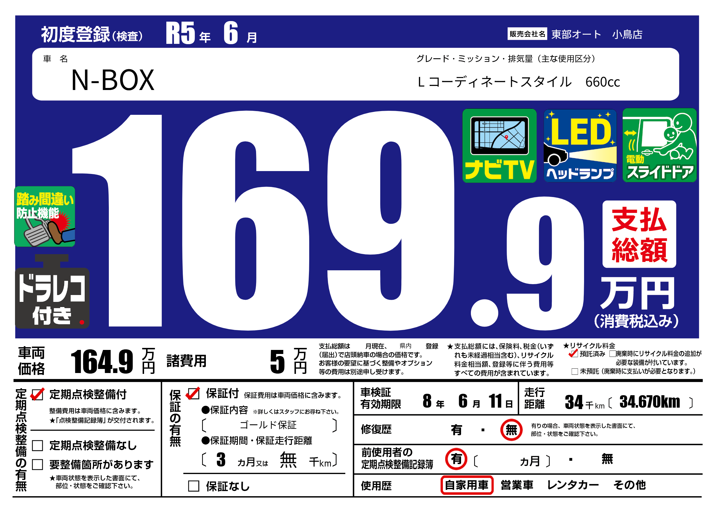 保証付き 保証内容( ゴールド保証) 3ヶ月または(無)千kmまで |