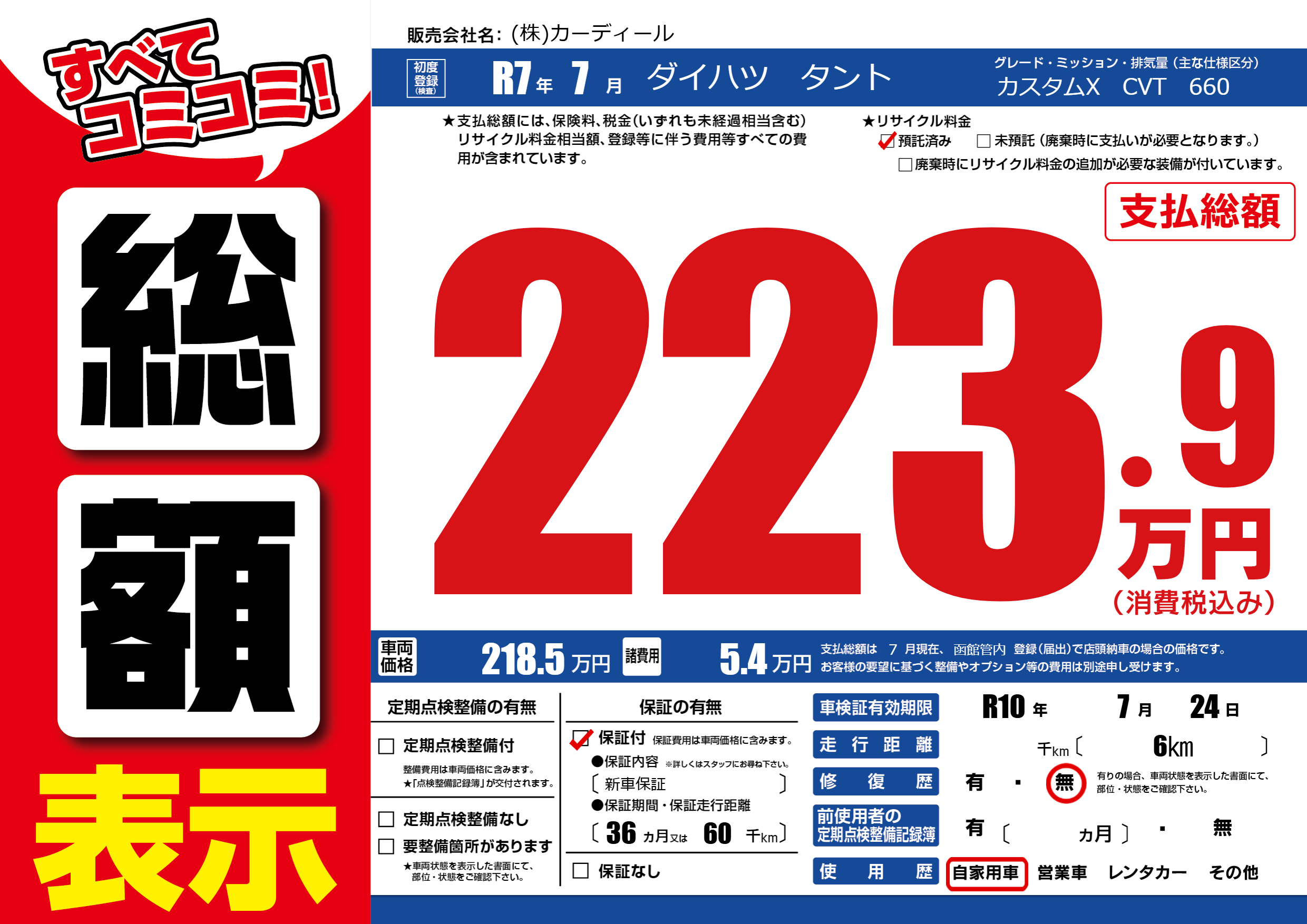 | 走行キロ | - | 初年度登録 | R7年7月 |
