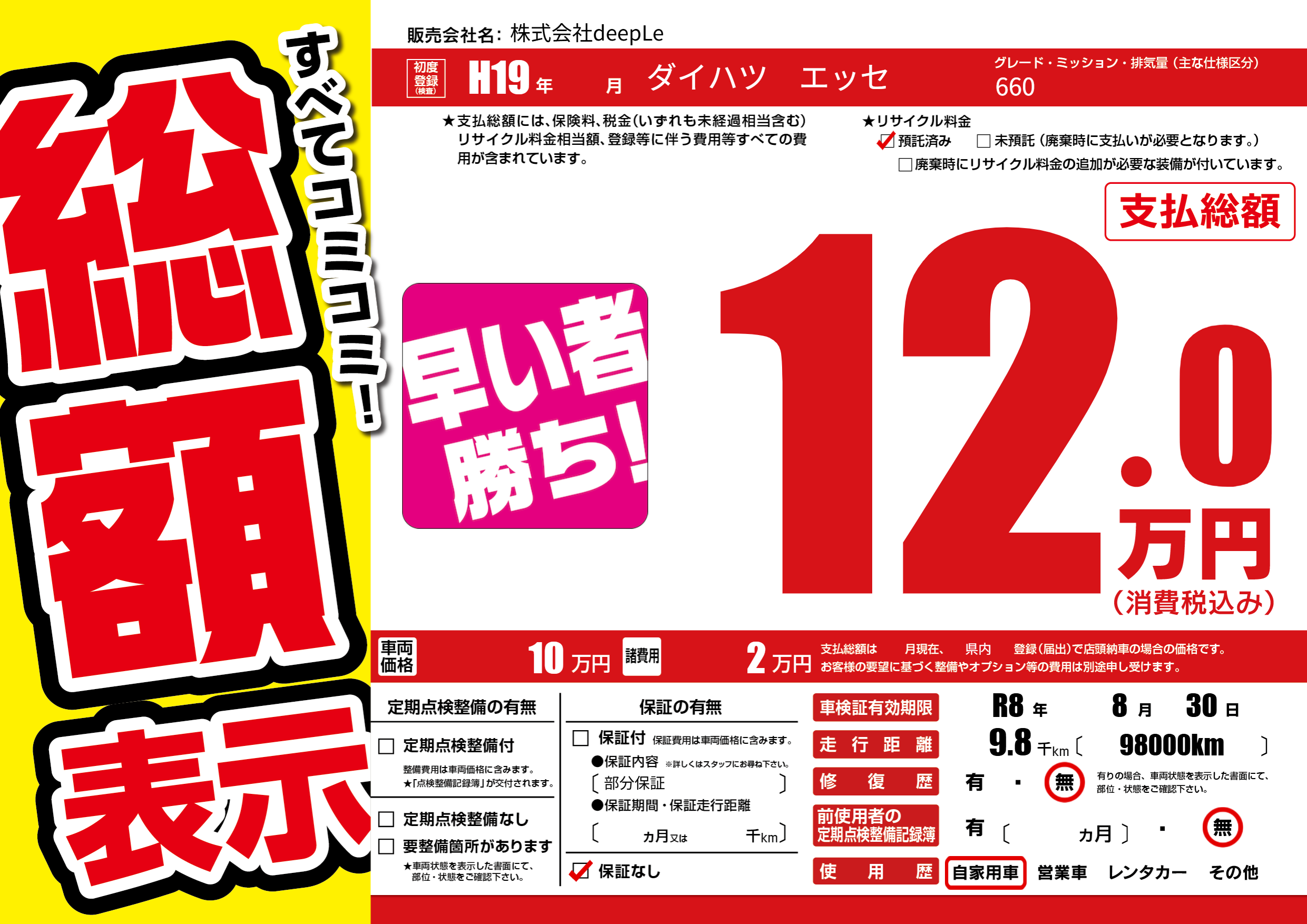 なし | 車検制限 | R8年8月30月 |