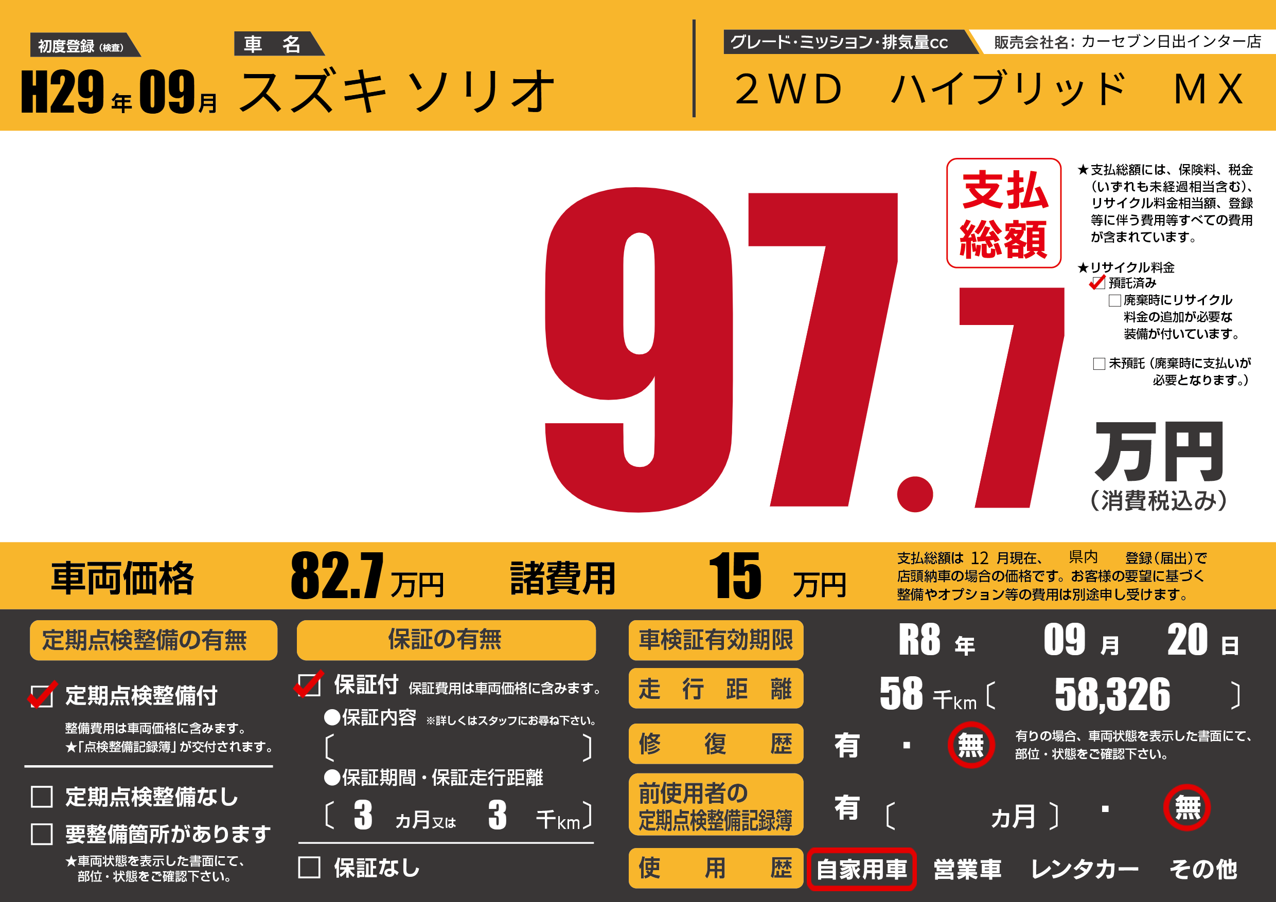 なし | 車検制限 | R8年09月20月 |