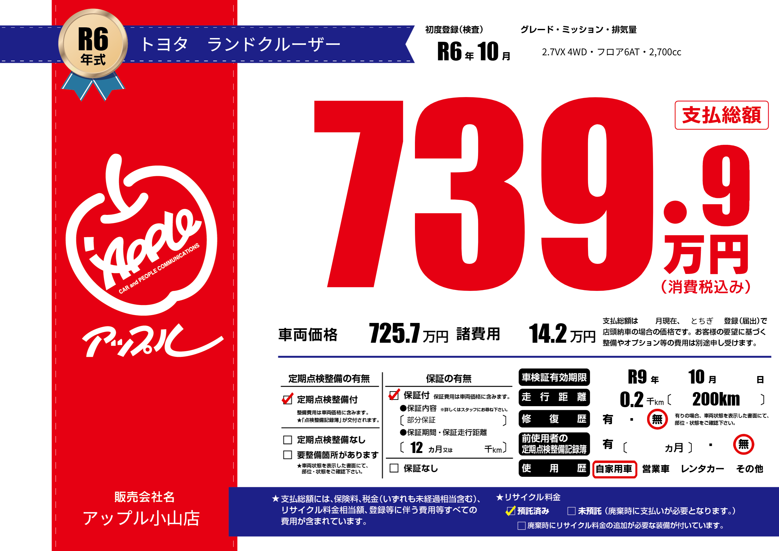 | 車名 | トヨタ ランドクルーザー | グレード ミッション 排気量 |