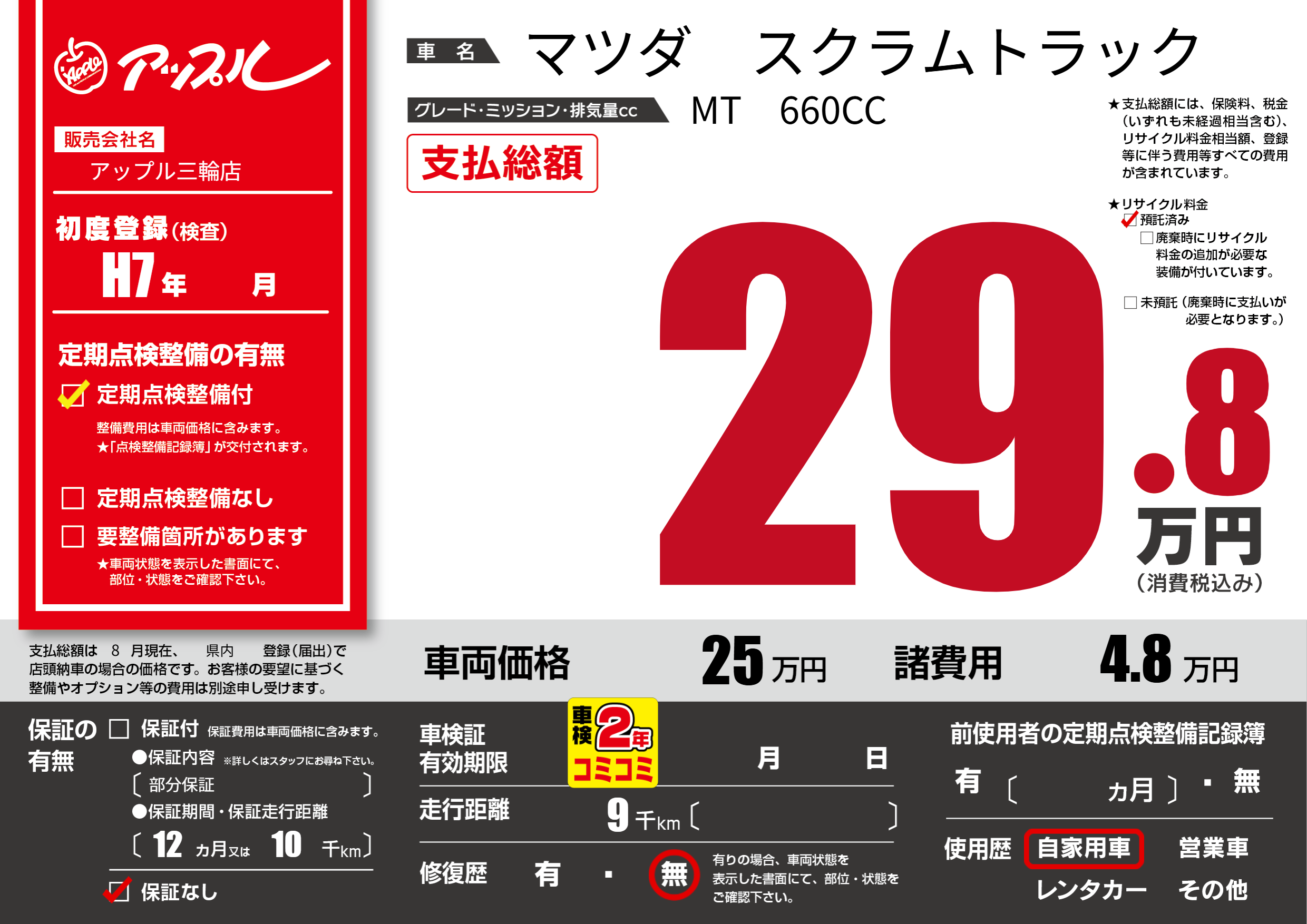 | 定期点検整備 | 定期点検整備あり | ||