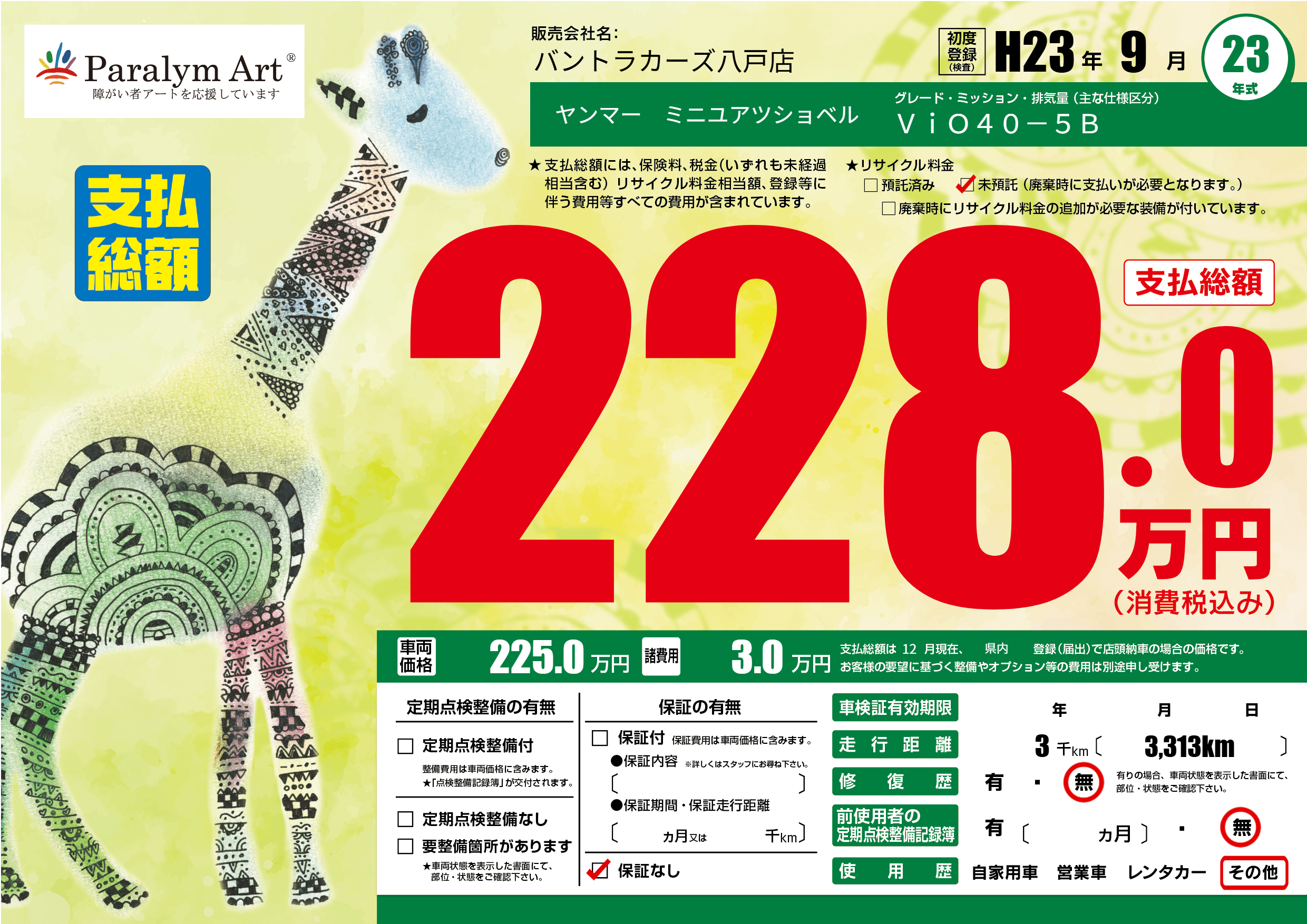 | 走行キロ | 0.3万km | 初年度登録 | H23年9月 |