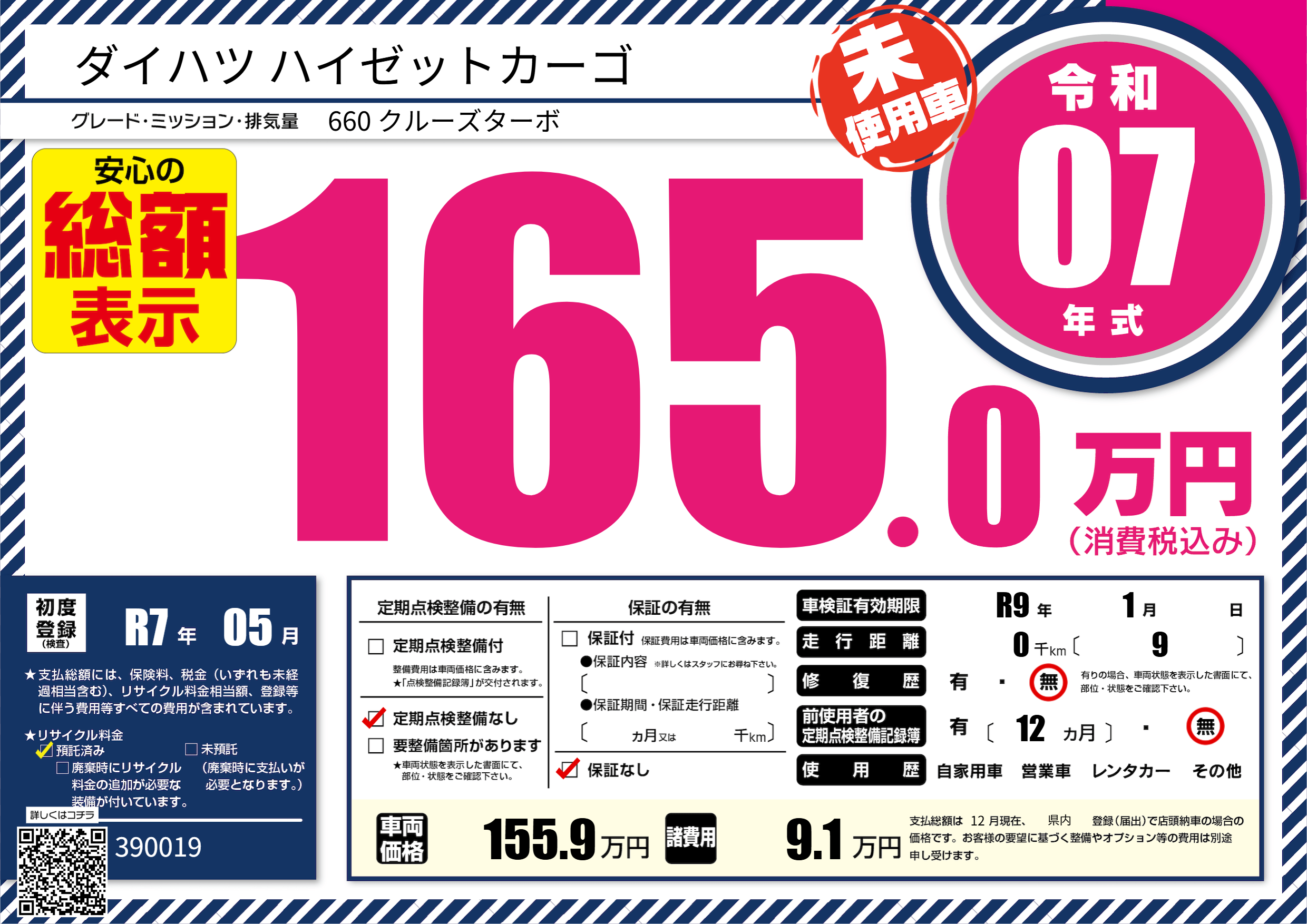 | 車検制限 | R9年 1月 - 日 | ||