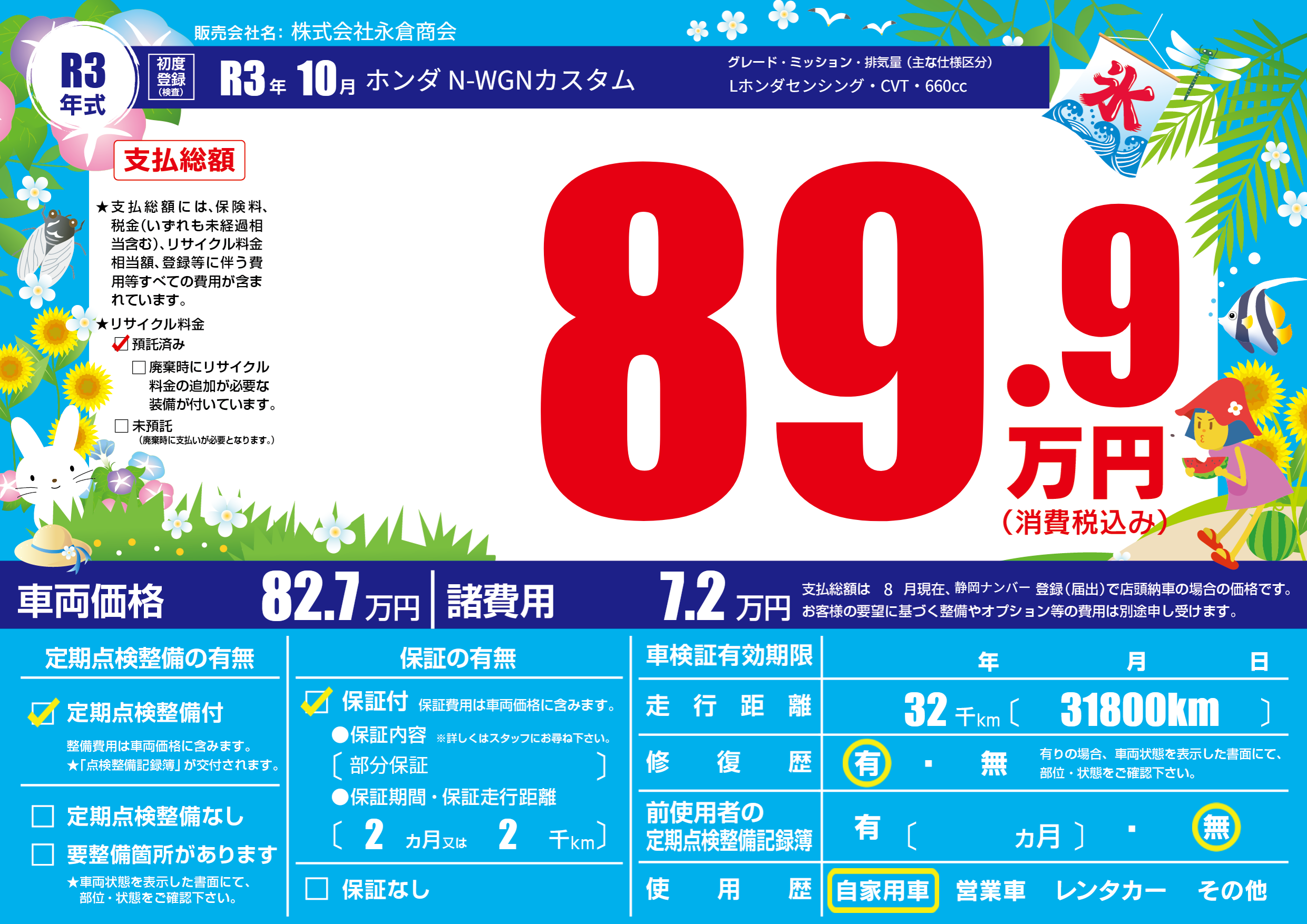 | 車名 | ホンダ N-WGNカスタム | グレード ミッション 排気量 |