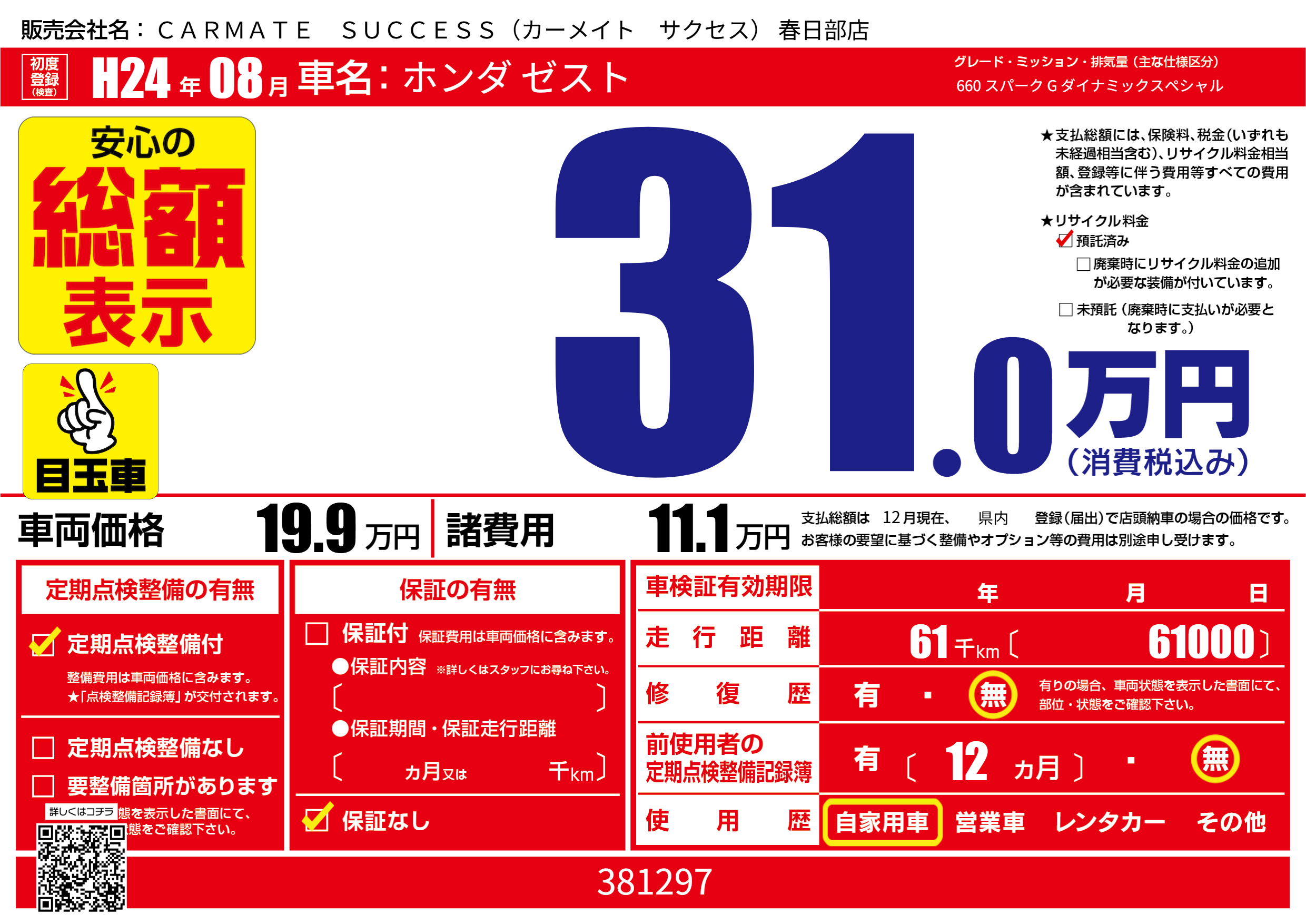| 定期点検整備 | 定期点検整備あり | ||