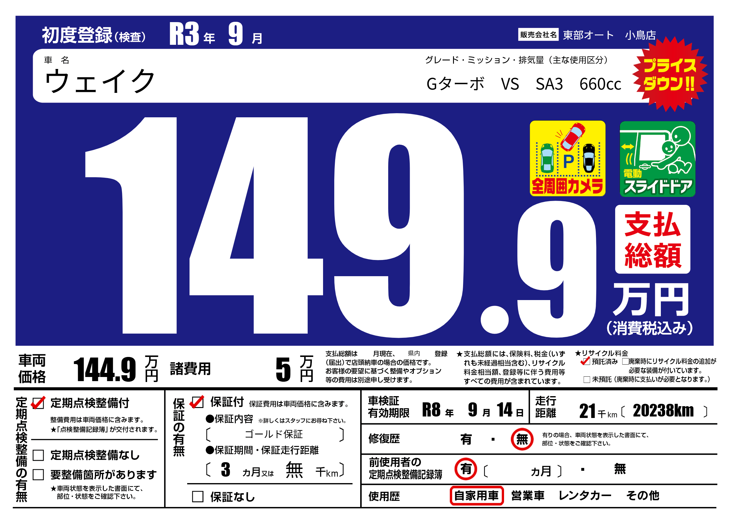 保証付き 保証内容( ゴールド保証) 3ヶ月または(無)千kmまで |