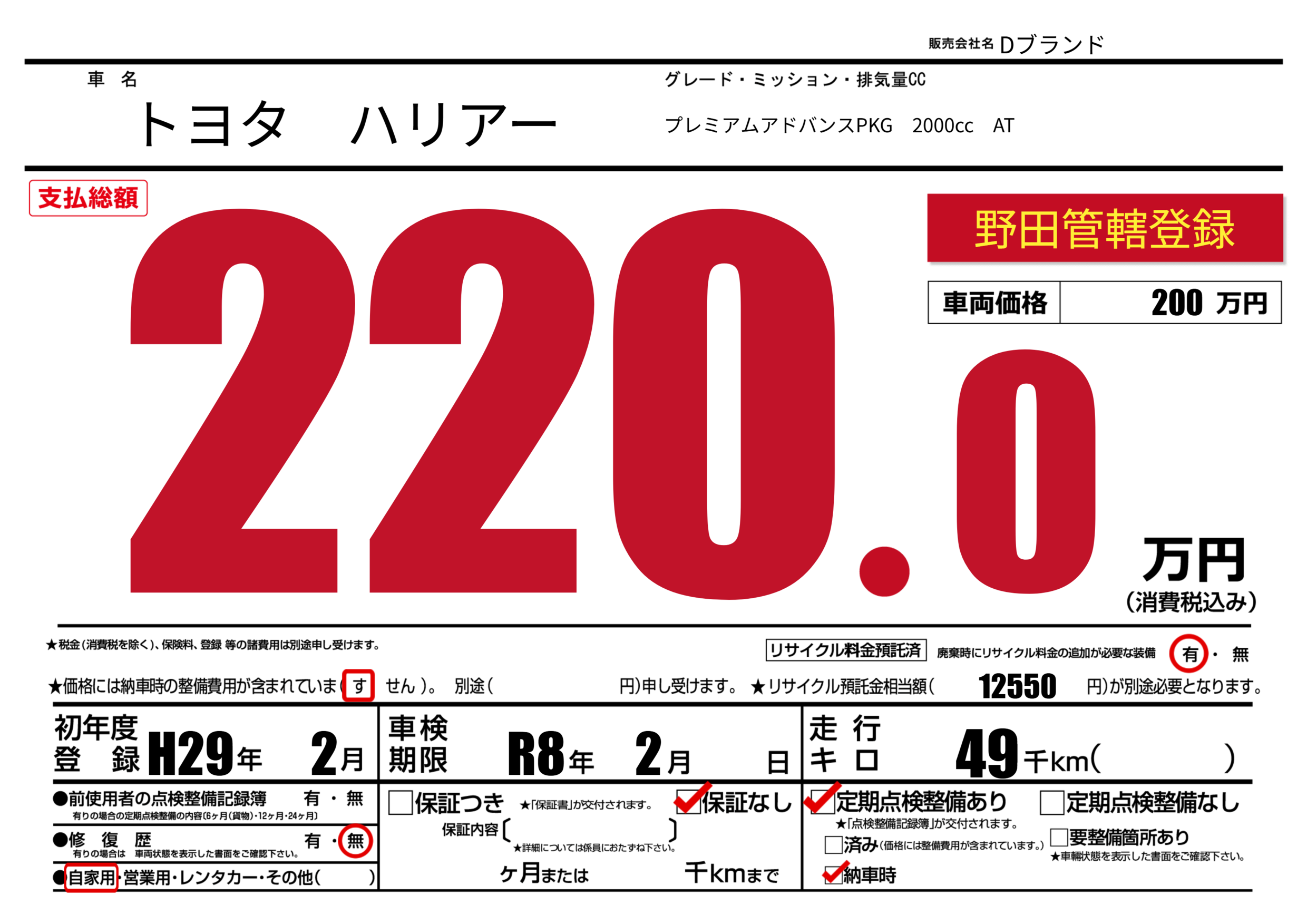 | 定期点検整備 | 定期点検整備あり 納車時あり | ||