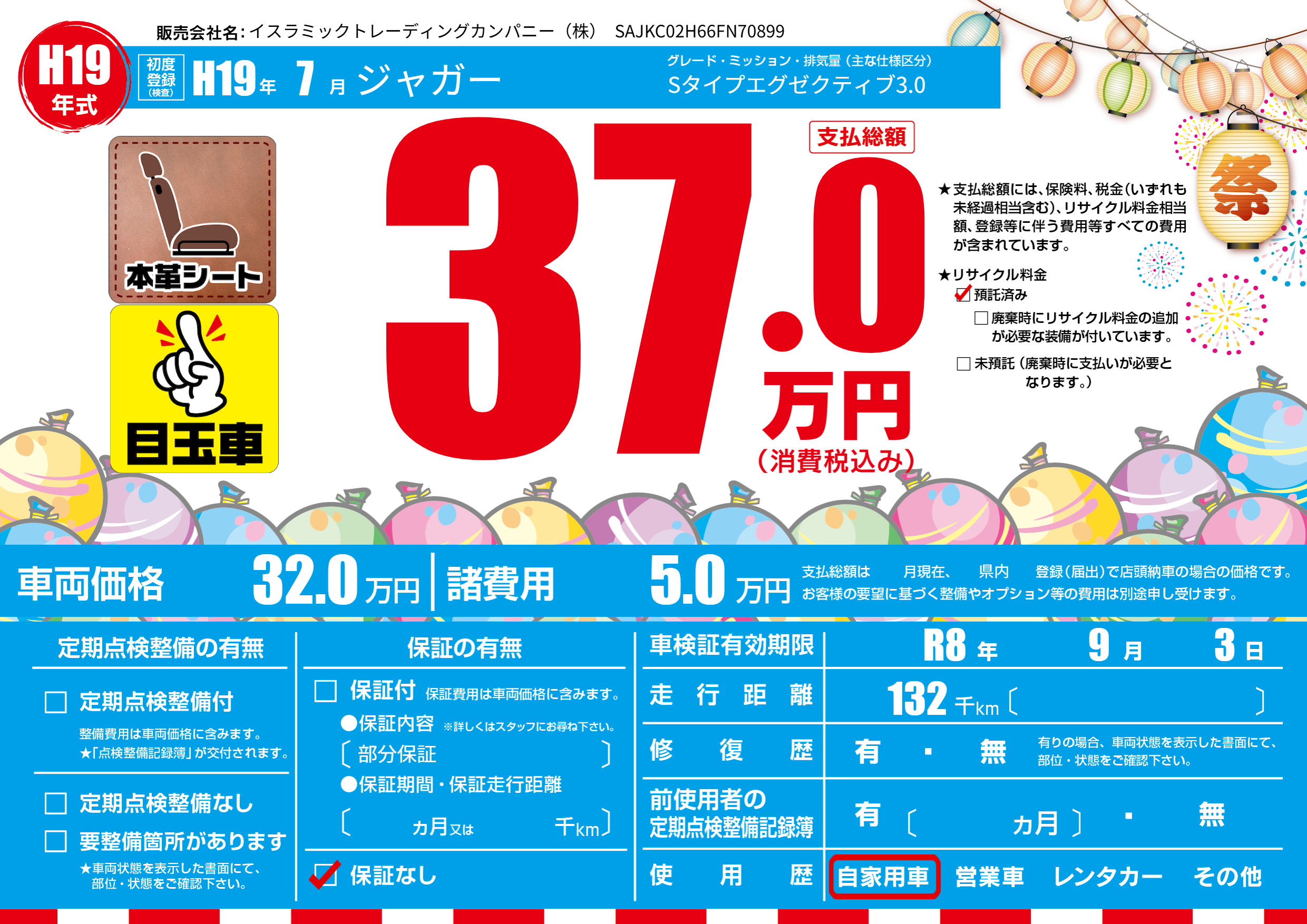 | 車名 | ジャガー | グレード ミッション 排気量 |