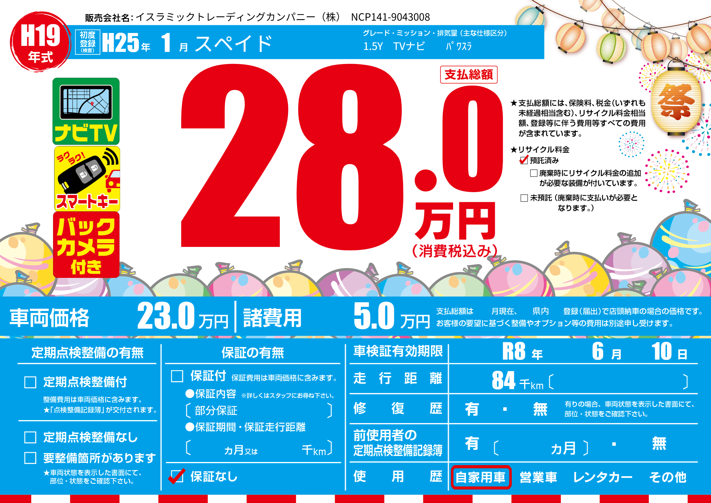 | 走行キロ | 8.4万km | 初年度登録 | H25年1月 |