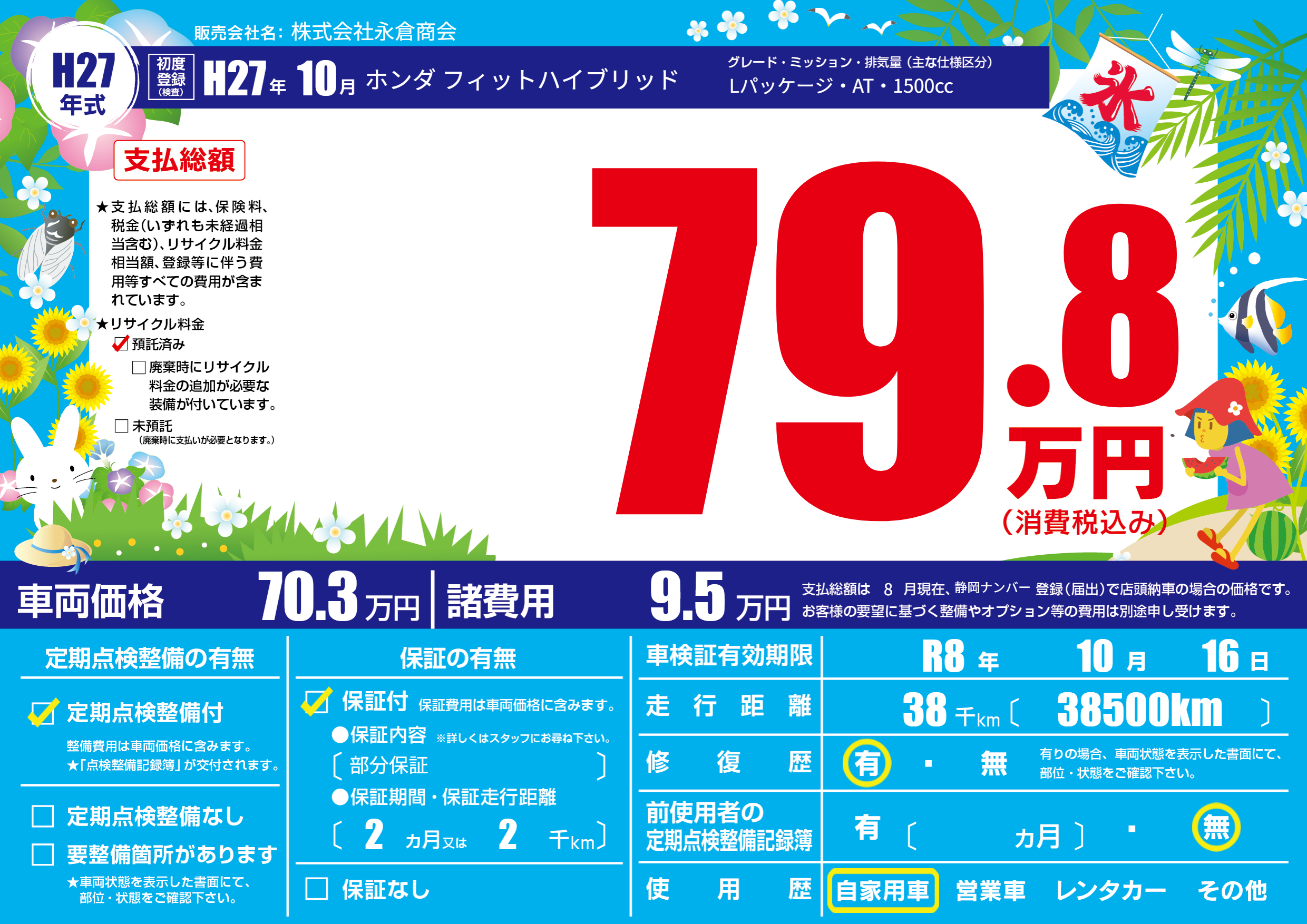 なし | 車検制限 | R8年10月16月 |