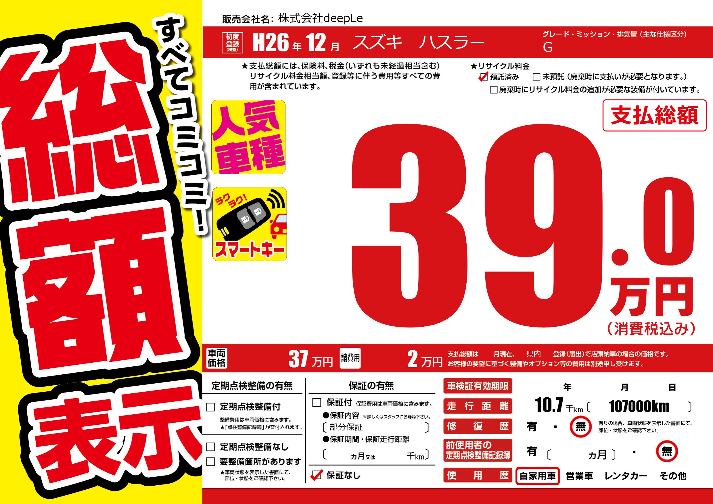 あり | リサイクル預託金相当額 | ( 0円)が別途必要 |