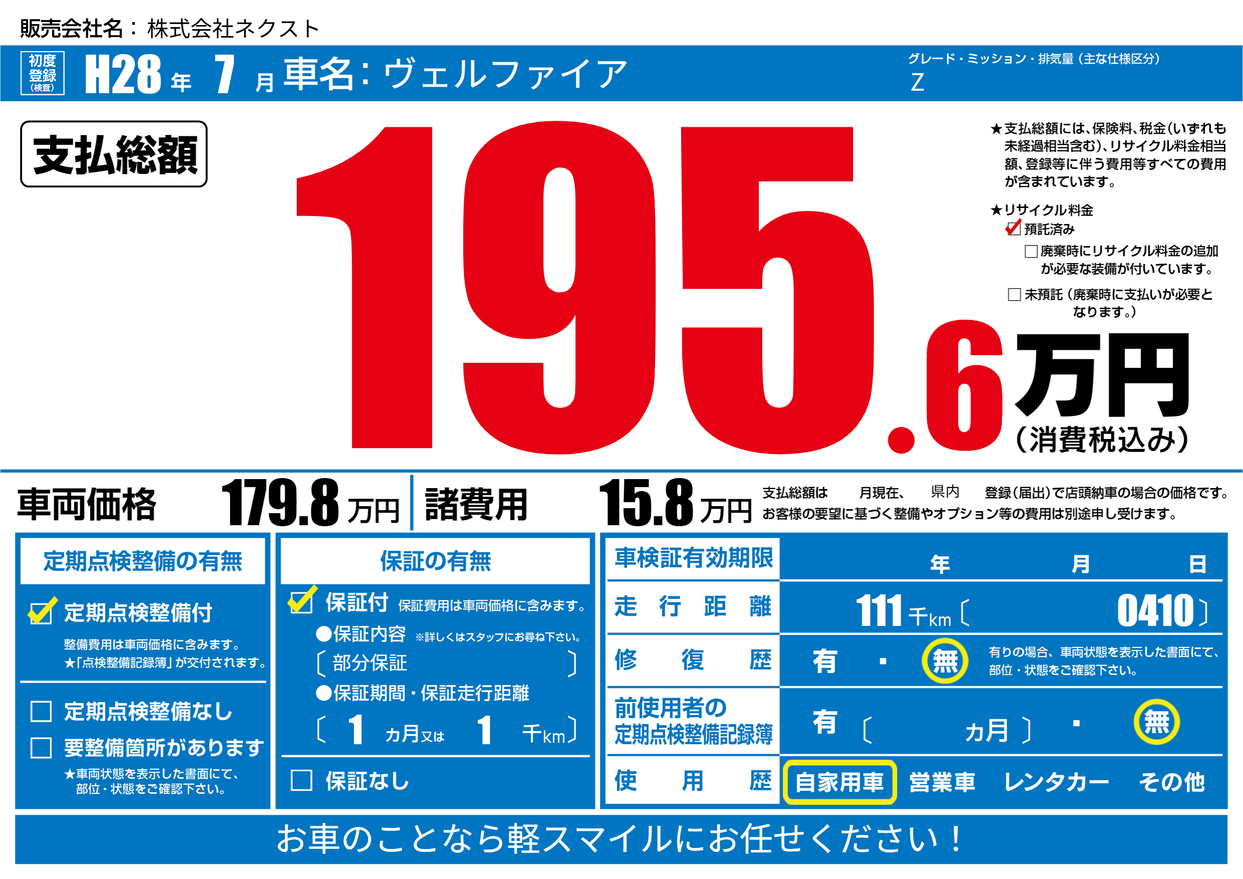 | 定期点検整備 | 定期点検整備あり | ||