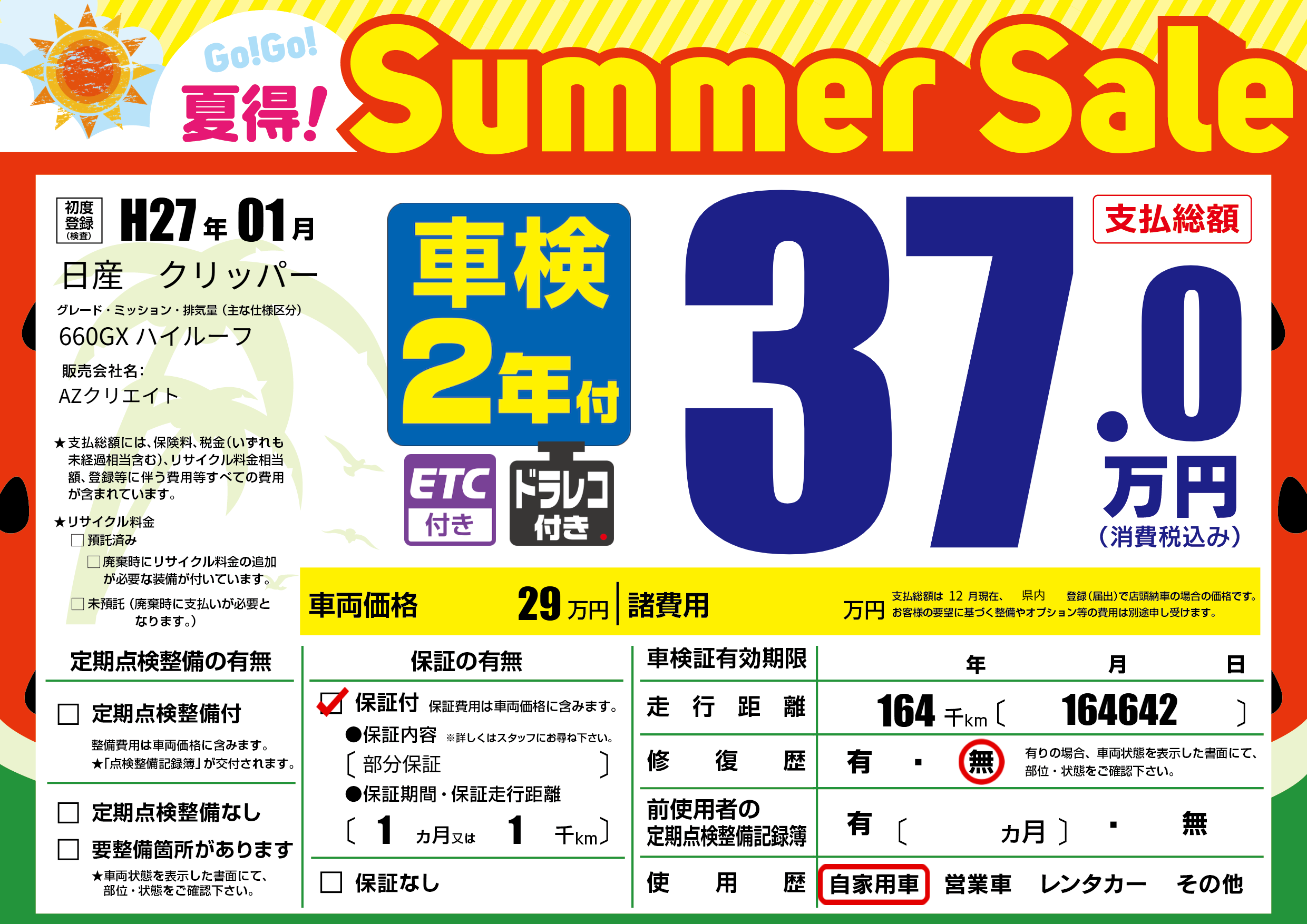 | 走行キロ | 16.4万km | 初年度登録 | H27年01月 |