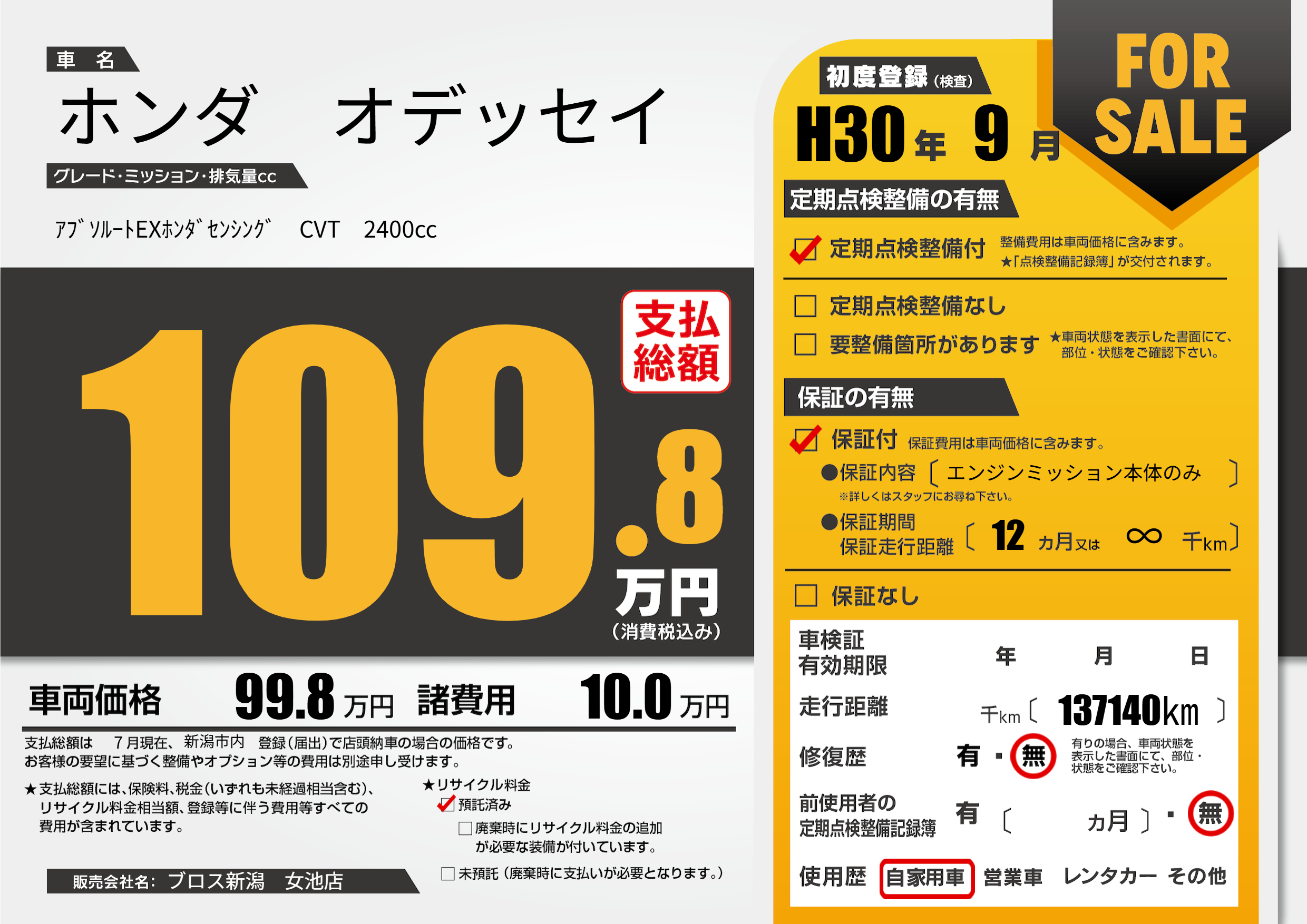 | 初年度登録 | H30年9月 | ||