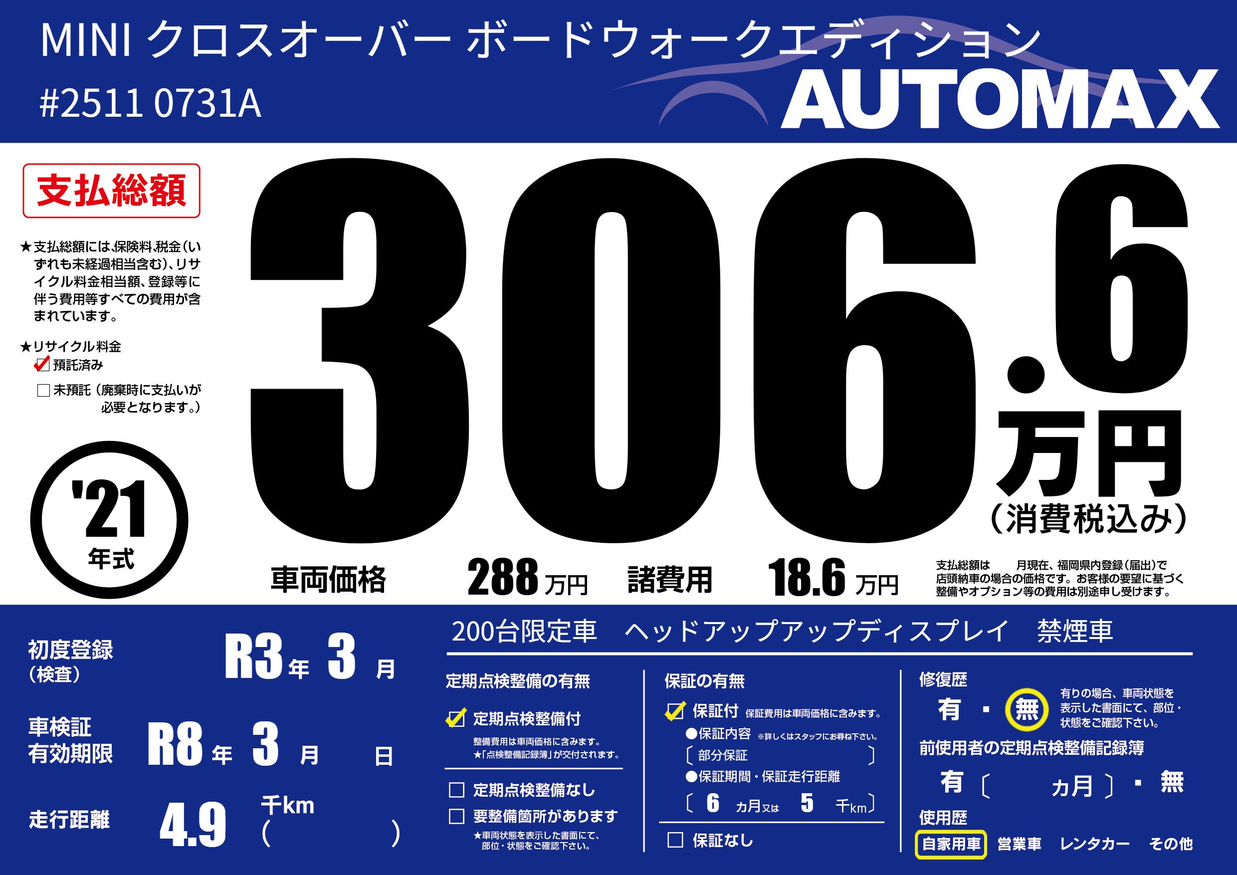 | 車検制限 | R8年 3月 - 日 | ||