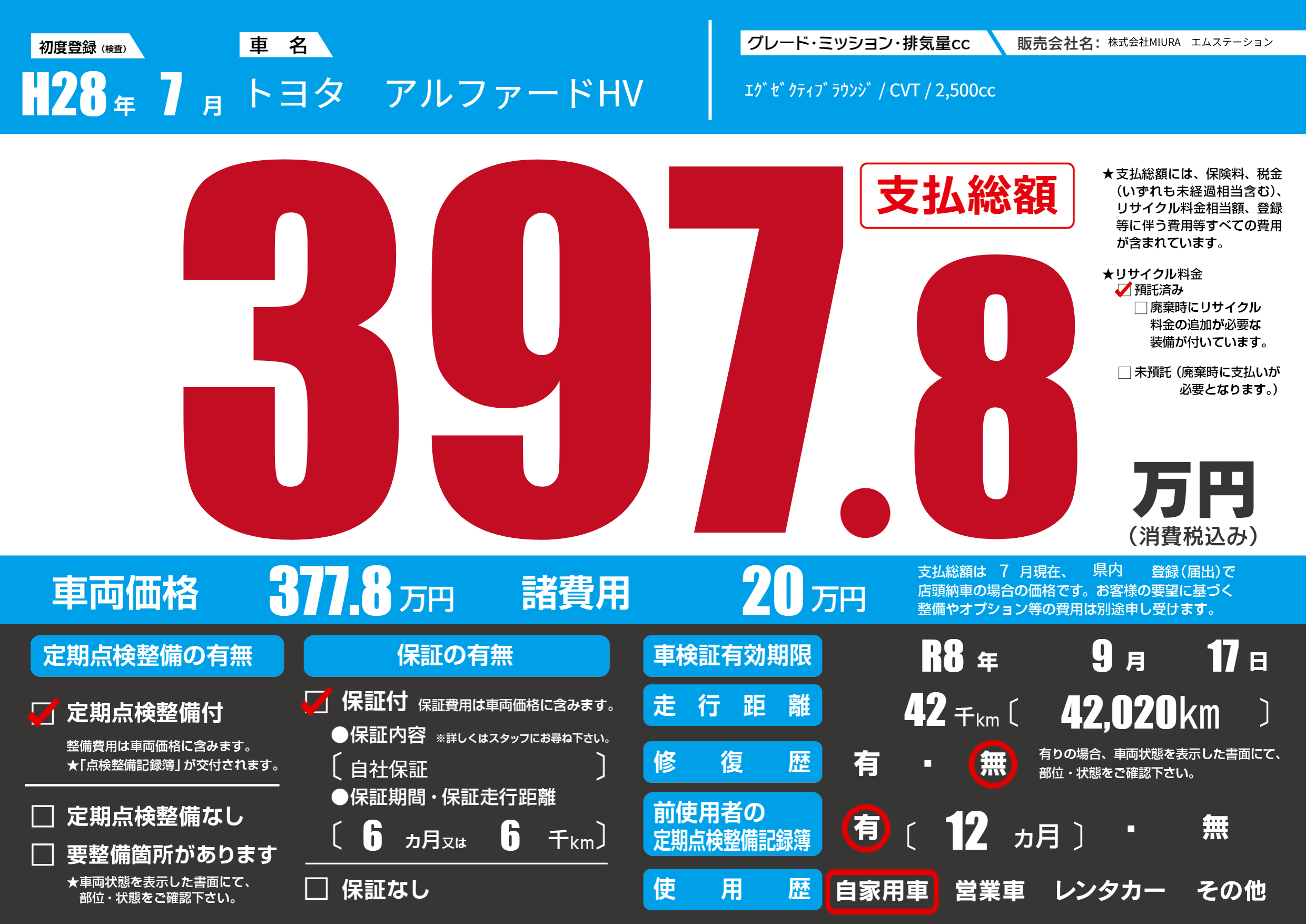 | 車検制限 | R8年 9月 17日 | ||