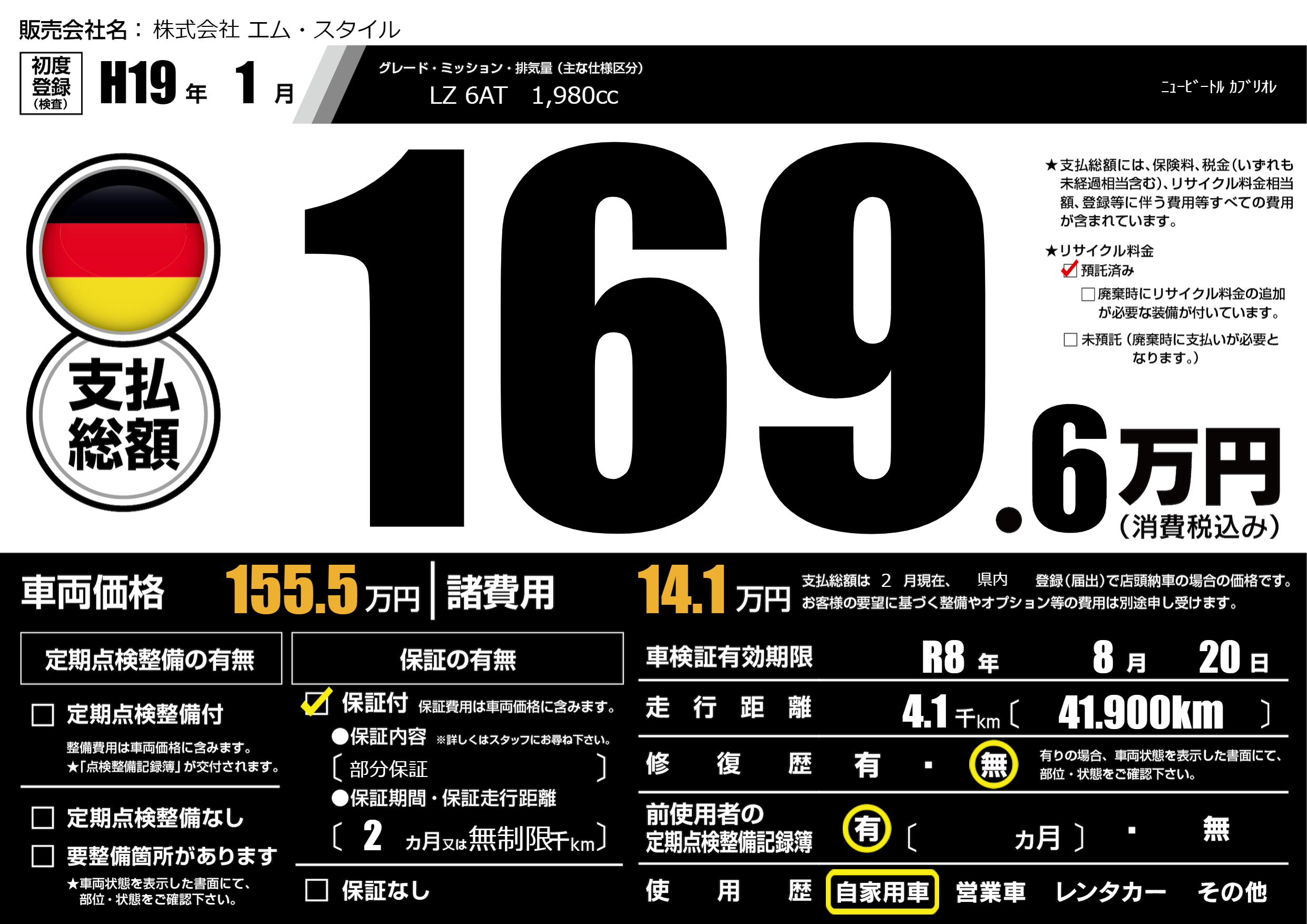 | 車検制限 | R8年 8月 20日 | ||