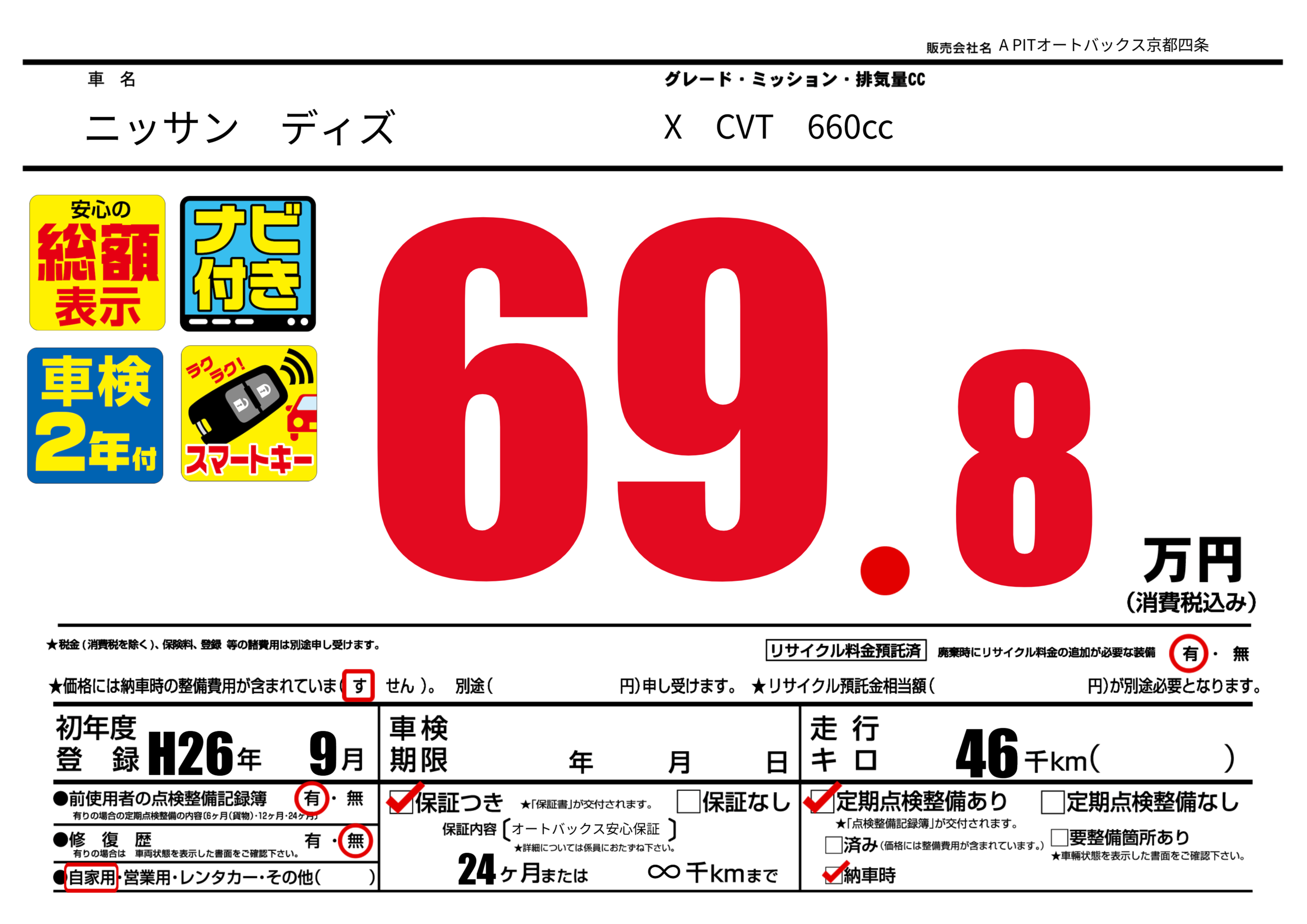 | 定期点検整備 | 定期点検整備あり 納車時あり | ||