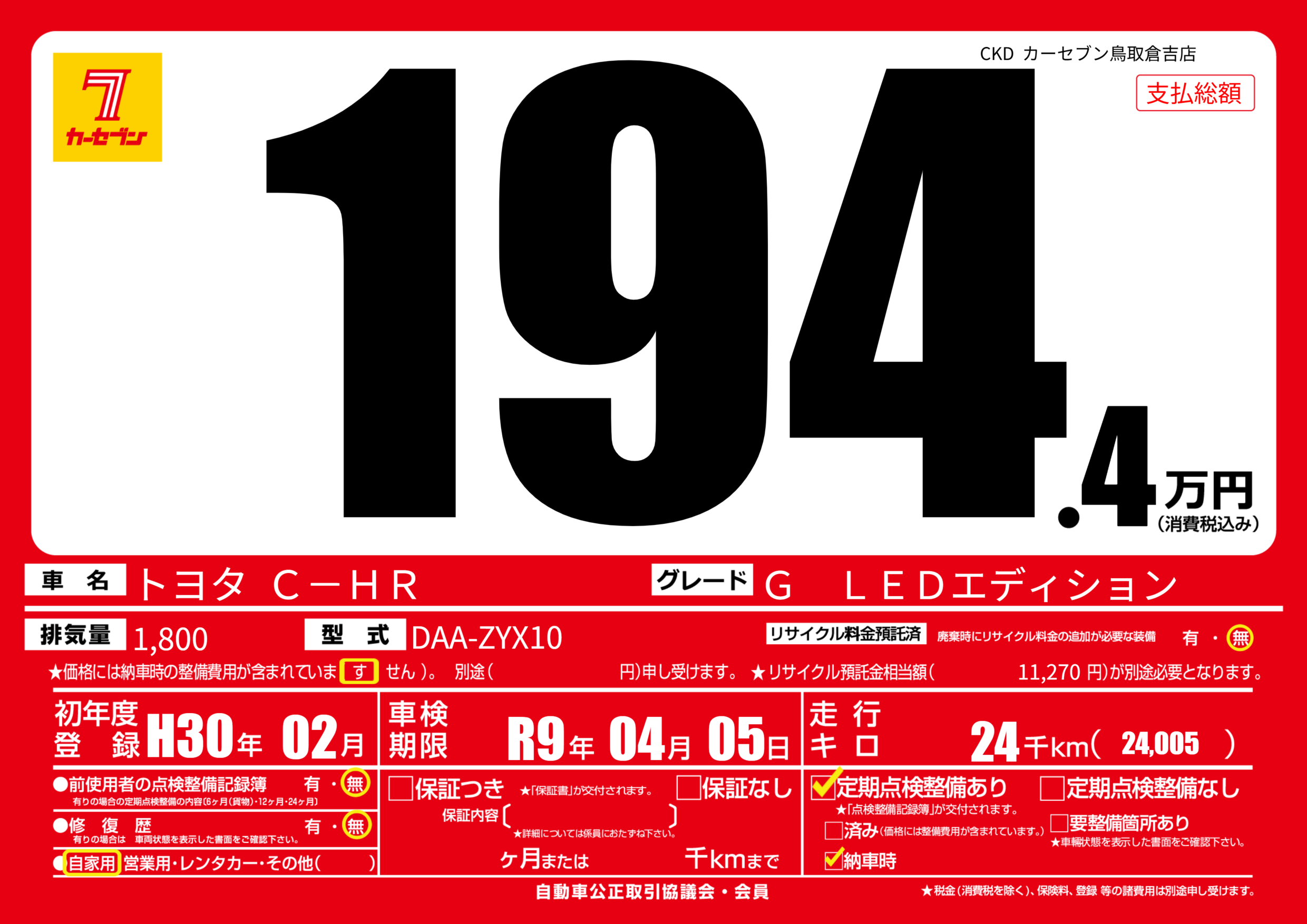 あり | 車検制限 | R9年04月05月 |