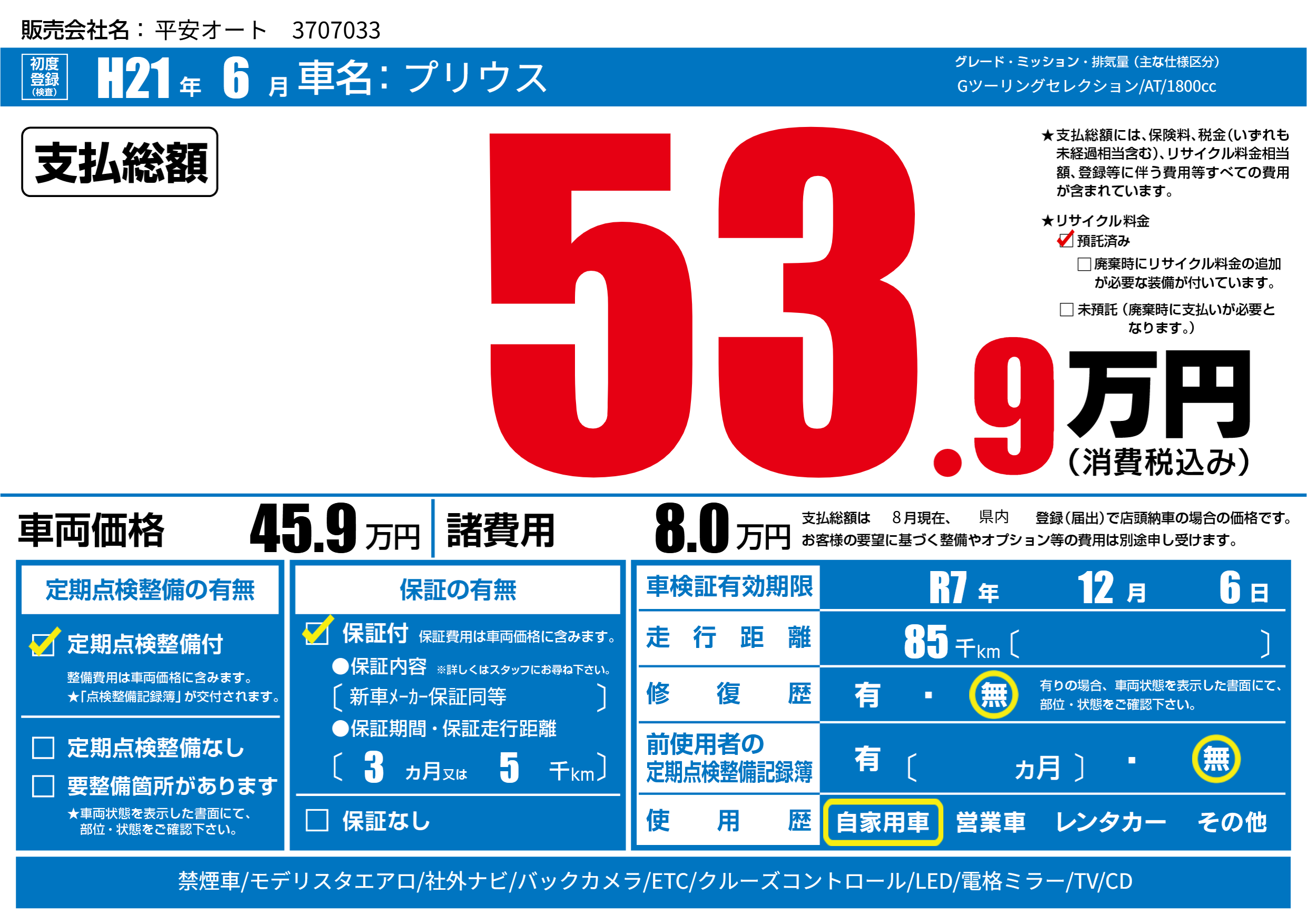 なし | 車検制限 | R7年12月6月 |