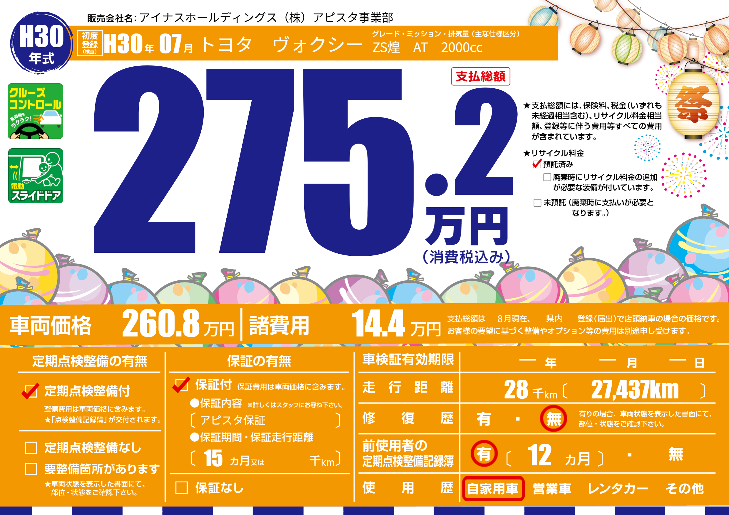 | 初年度登録 | H30年07月 | ||