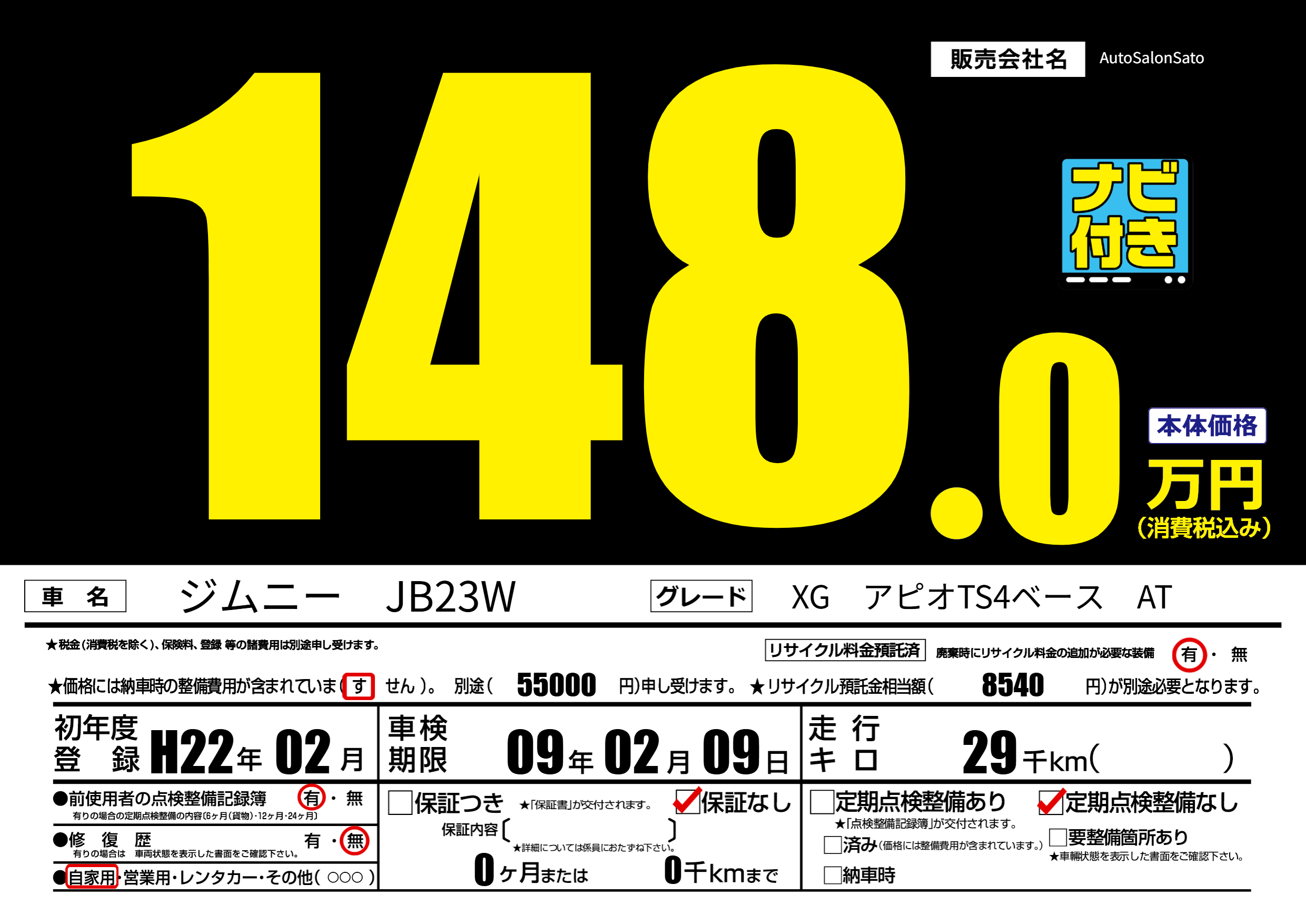 保証なし 保証内容() 0ヶ月または0千km |
