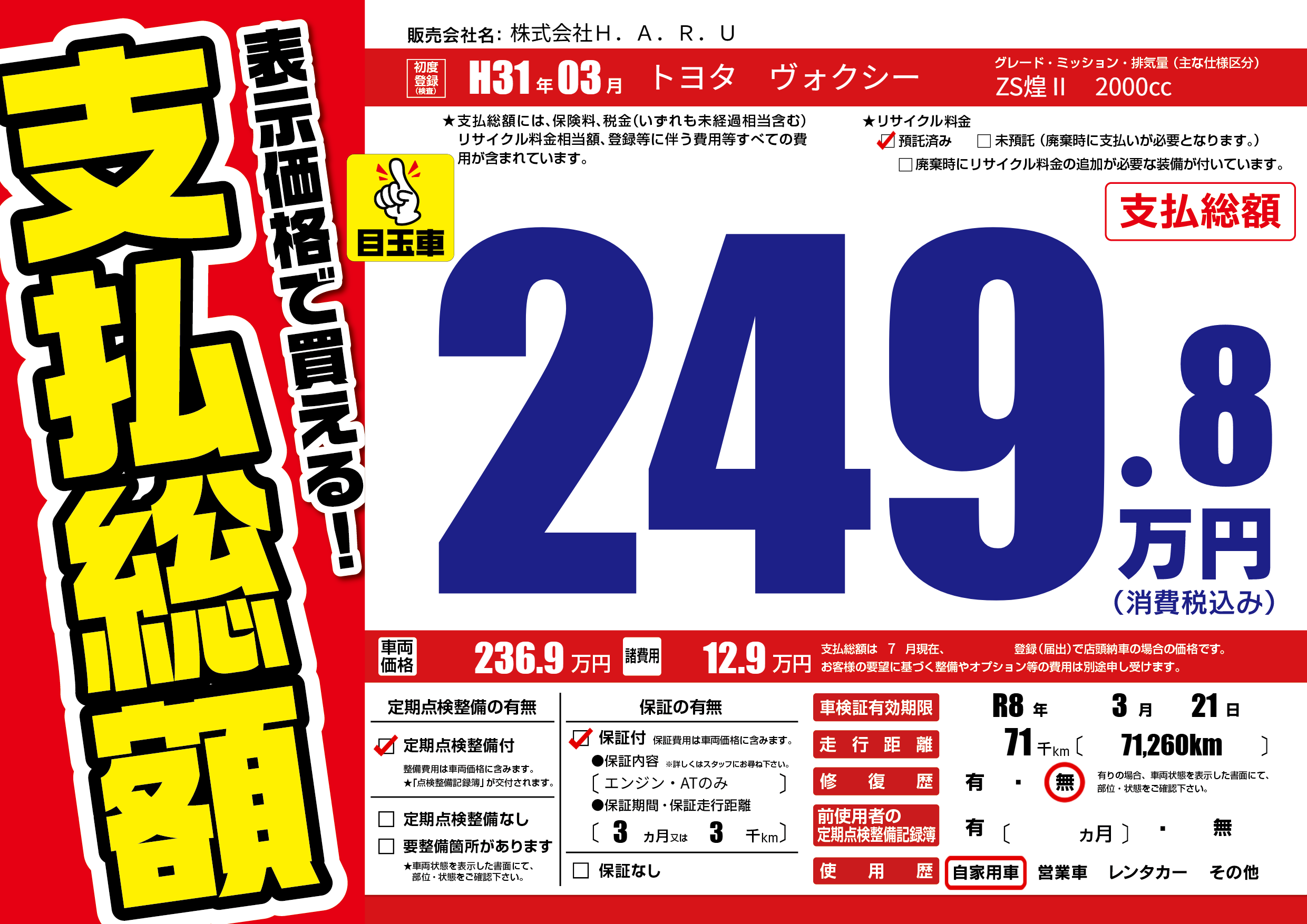 | 車検制限 | R8年 3月 21日 | ||