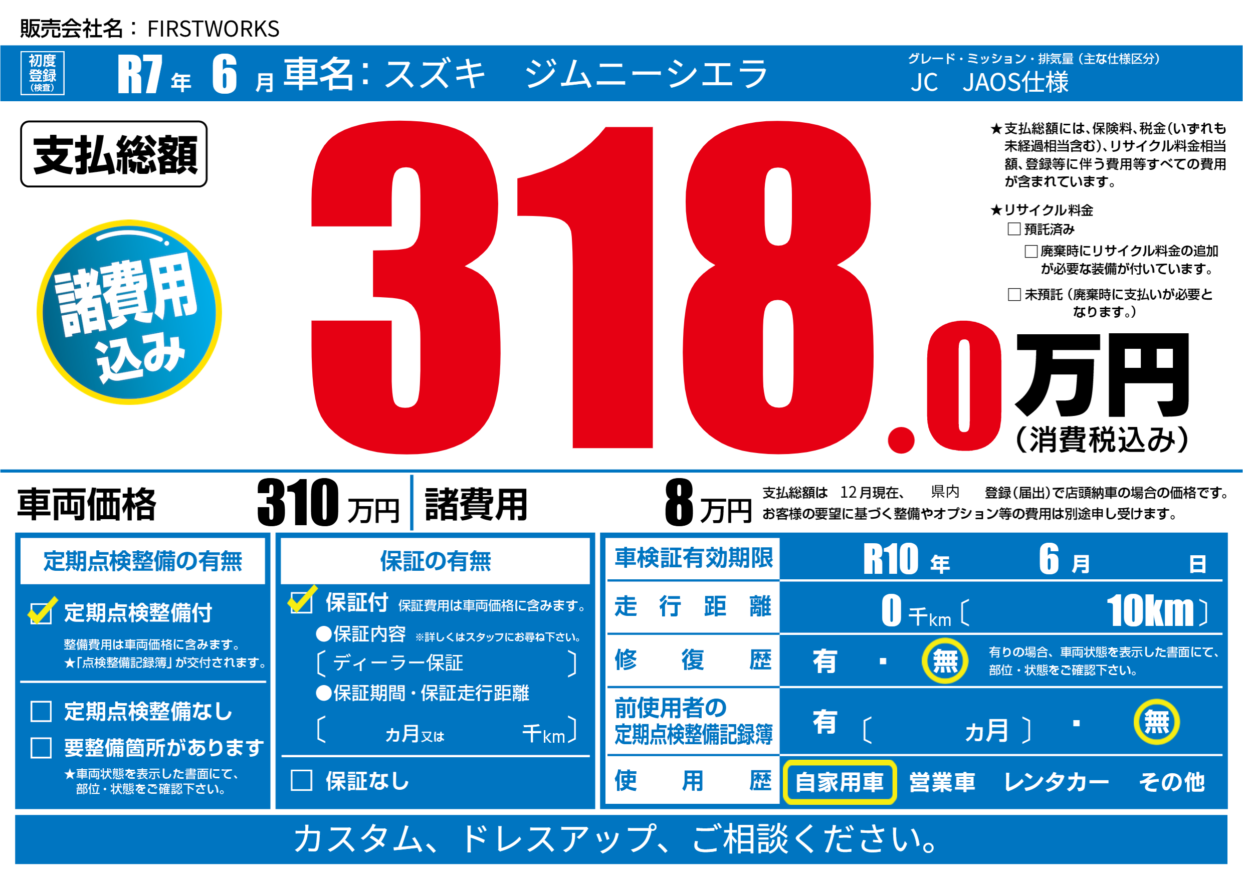 | 走行キロ | - | 初年度登録 | R7年6月 |