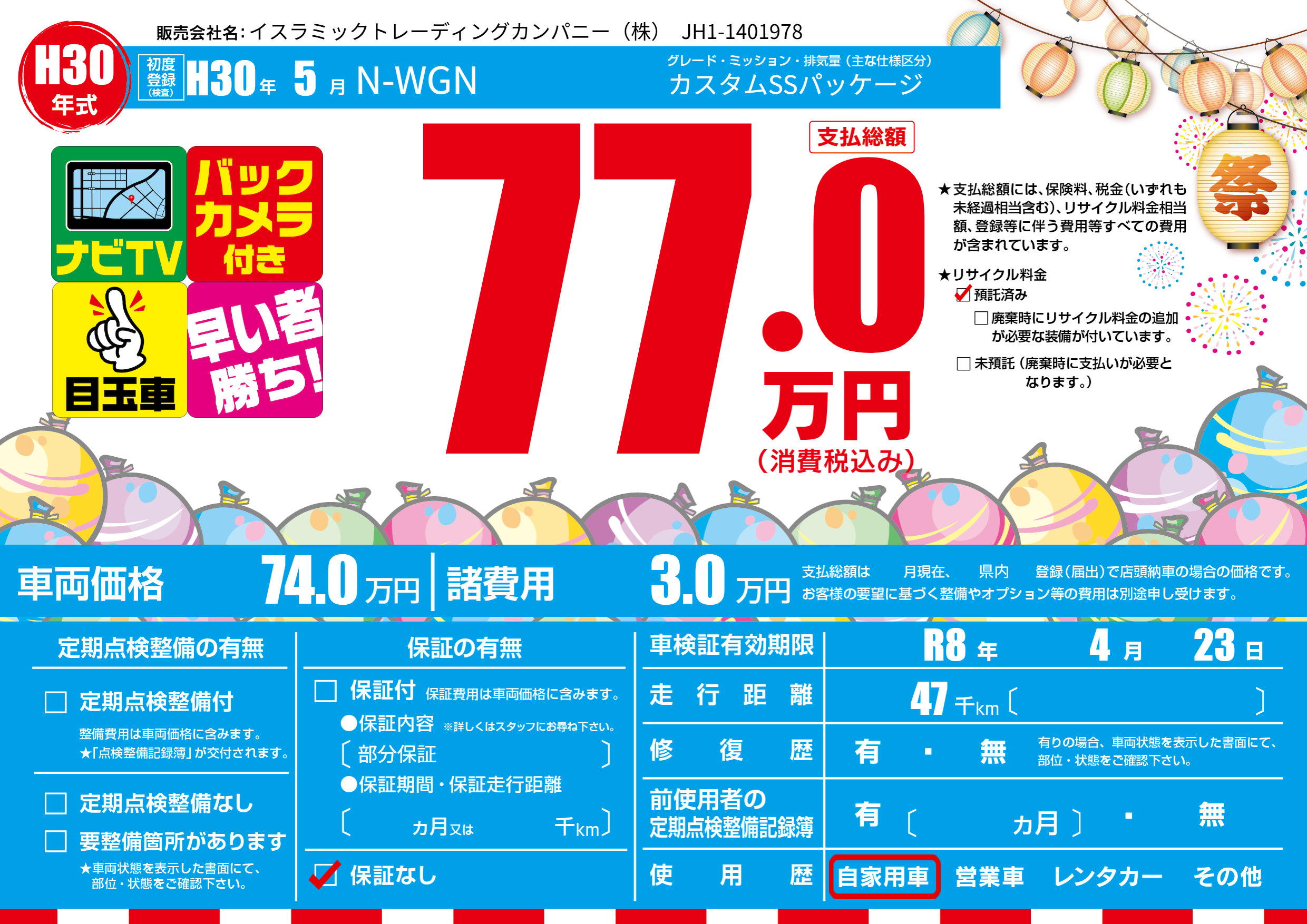 なし | 車検制限 | R8年4月23月 |