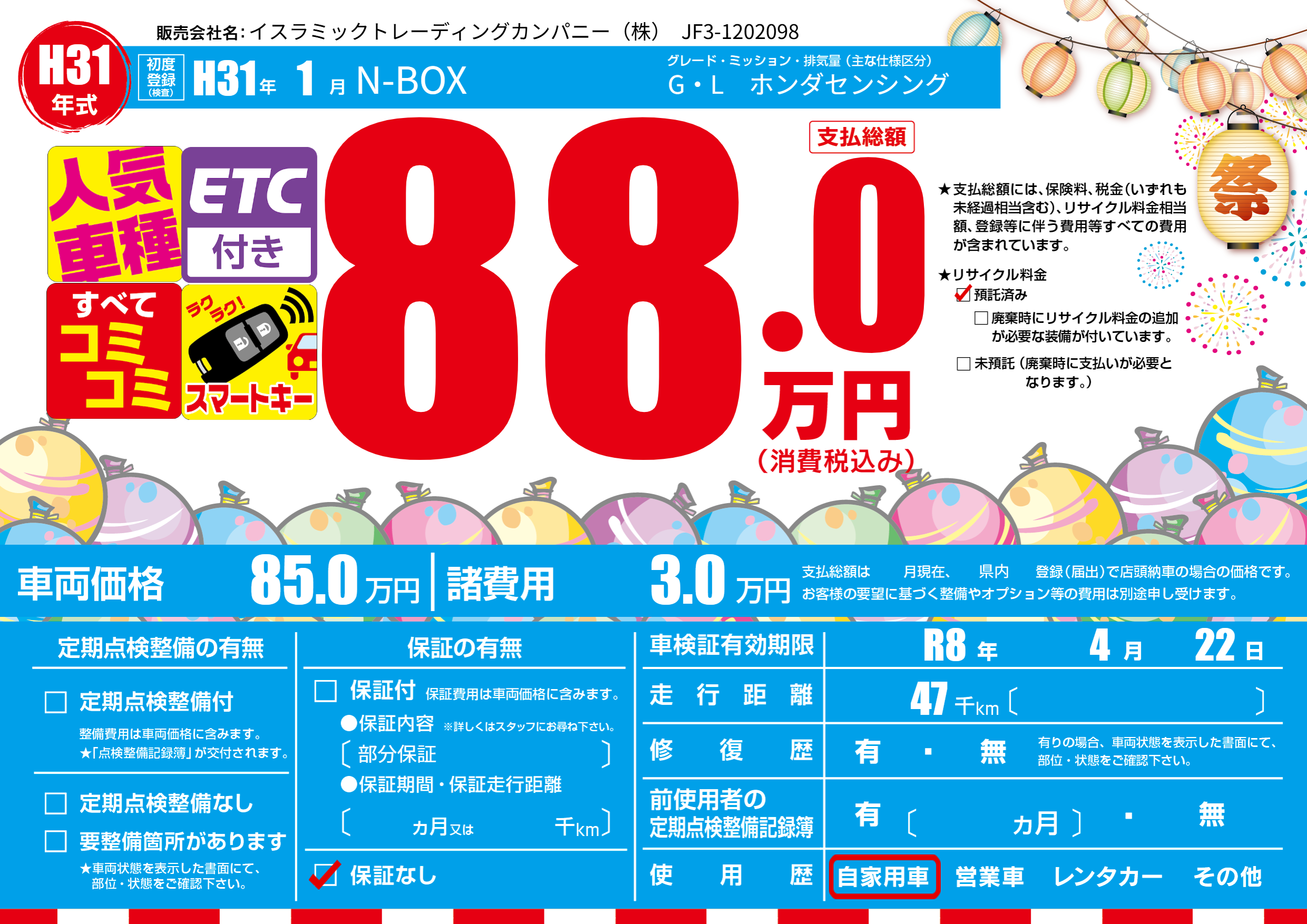 なし | 車検制限 | R8年4月22月 |