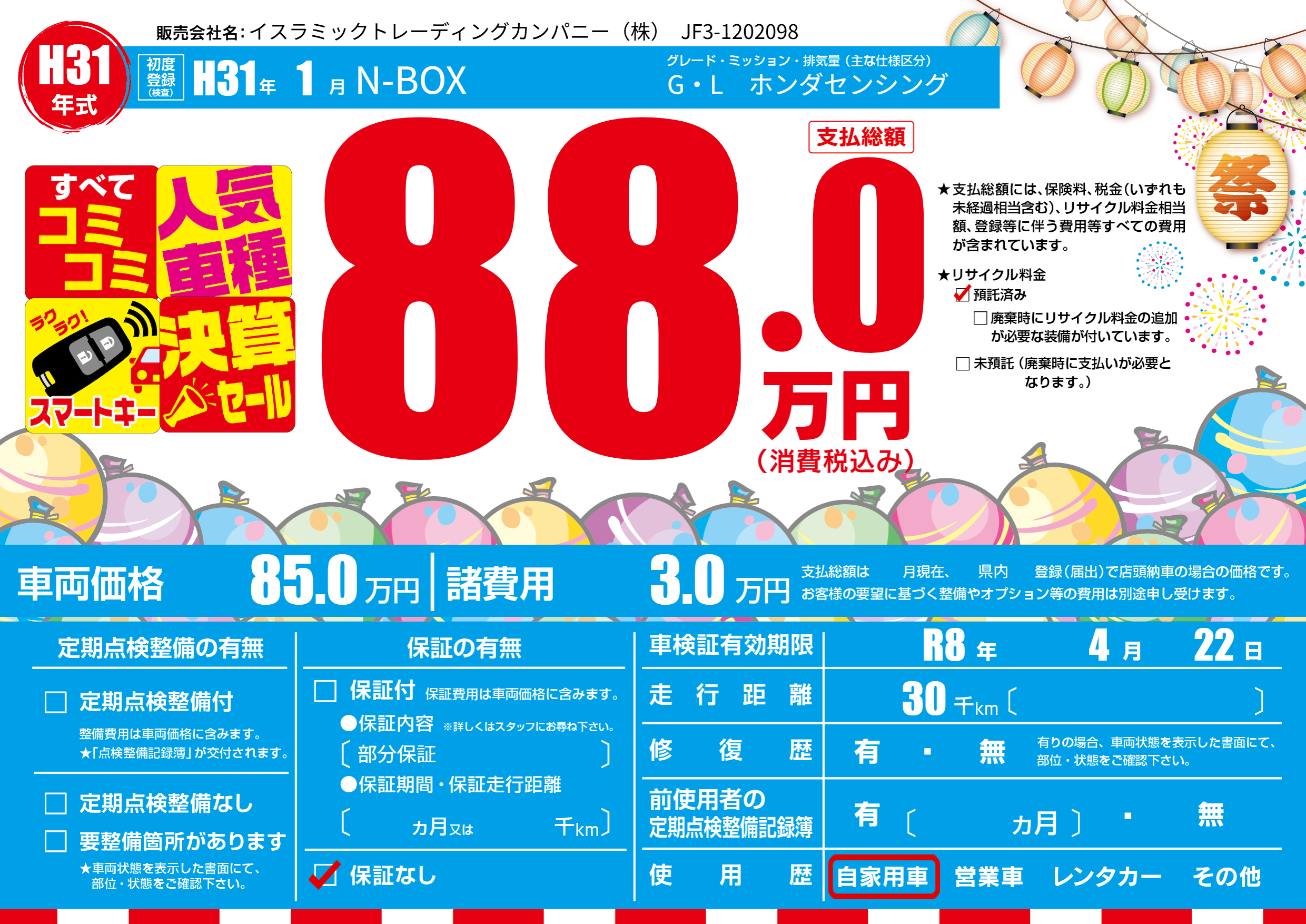 なし | 車検制限 | R8年4月22月 |