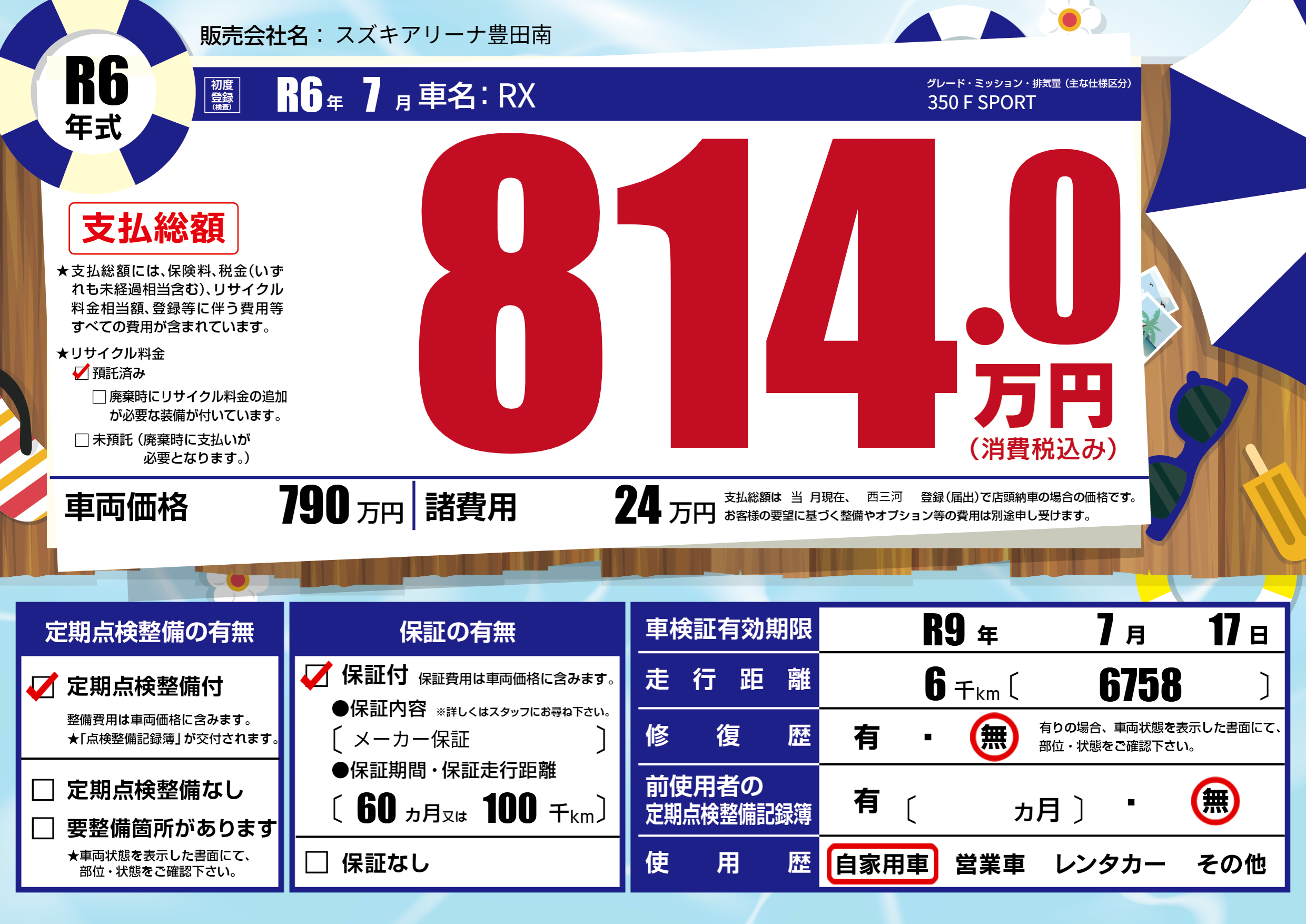 | 走行キロ | 0.6万km | 初年度登録 | R6年7月 |