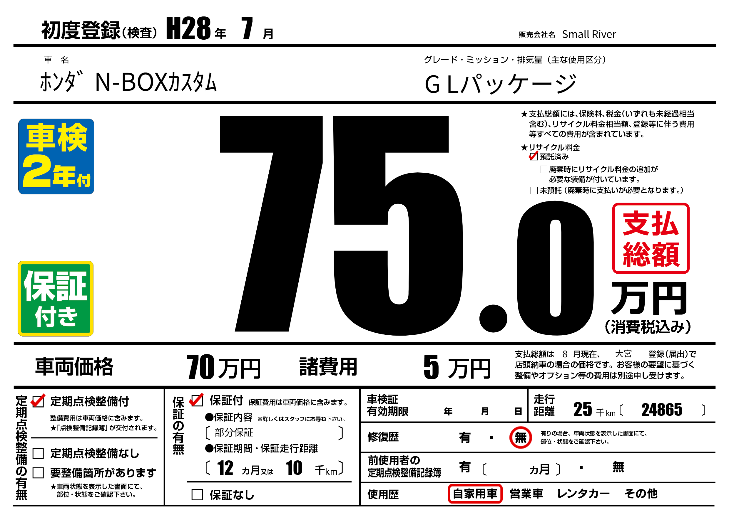 | 走行キロ | 2.5万km | ||