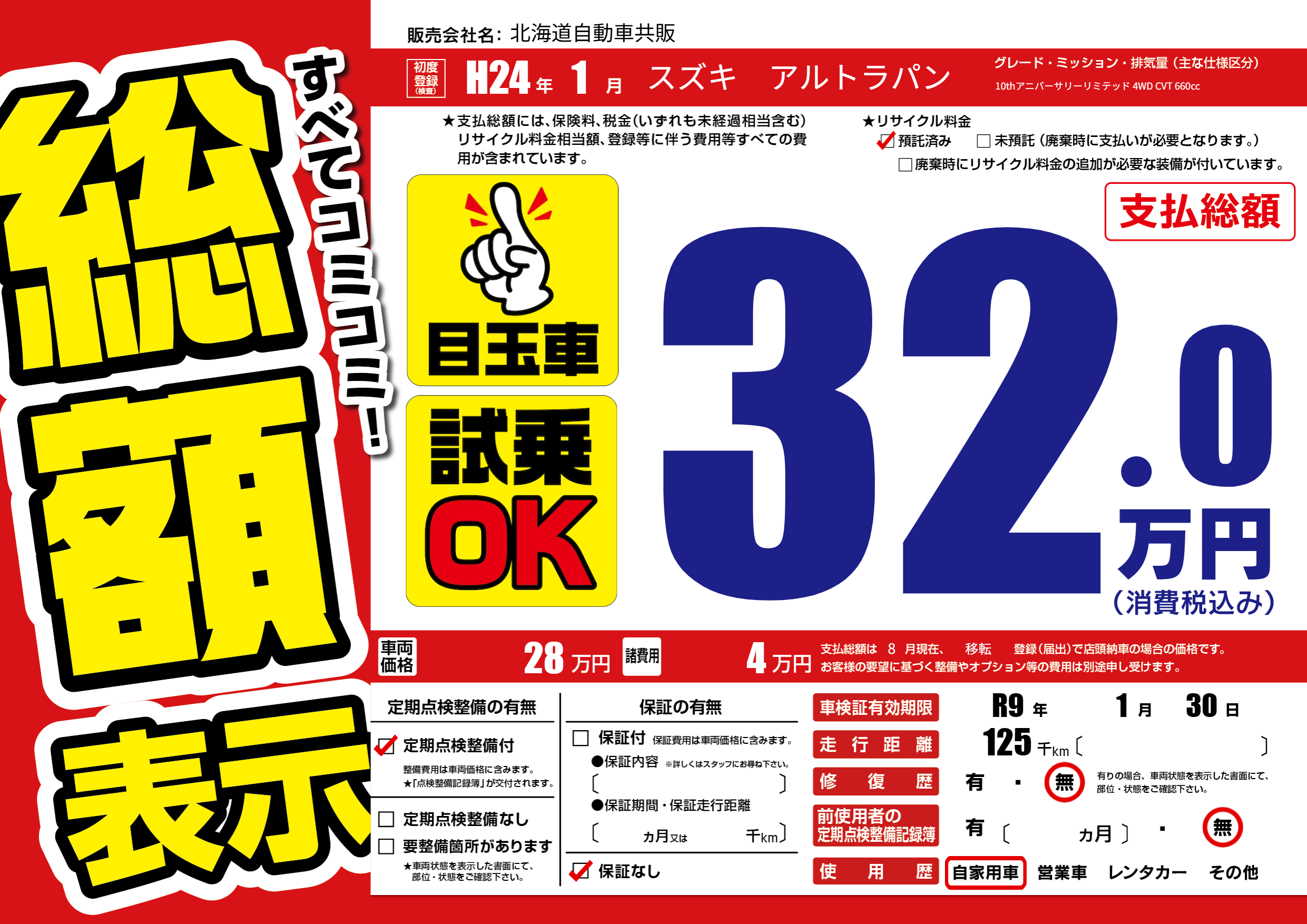 なし | 車検制限 | R9年1月30月 |