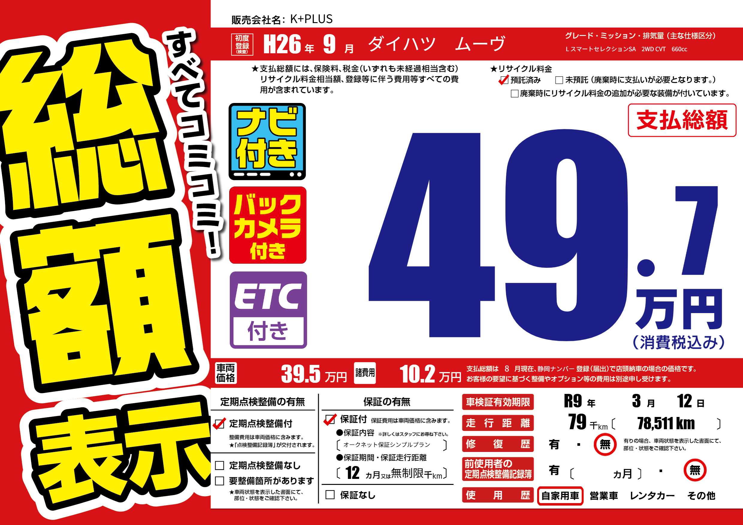 なし | 車検制限 | R9年3月12月 |