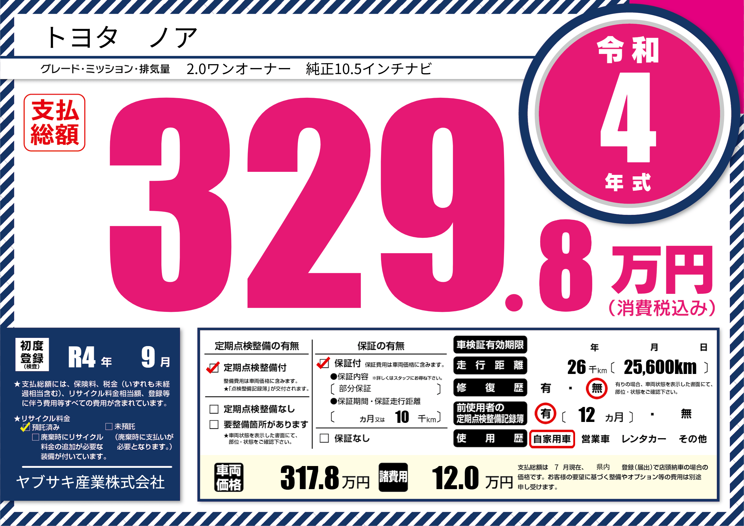 | 走行キロ | 2.6万km | 初年度登録 | R4年9月 |